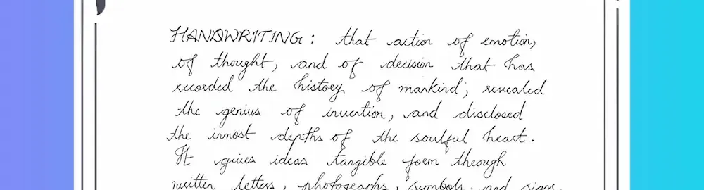 HANDWRITING: that action of emotion, of thought, and of decision that has recorded the history of mankind, revealed the genius of invention, and disclosed the inmost depths of the soulful heart. It gives ideas tangible form through written letters, photographs, symbols, and signs. Handwriting forms a bond across millennia and generation that not only this us to the thoughts and deeds of our forebears, but also serves as an irrevocable link to our humanity. Neither machines nos technology can replace the contribution or continuing importance of this inexpensive portable skill. Necessary in every age, handwriting remains just as vital to the enduring saga of civilization as our next breath.