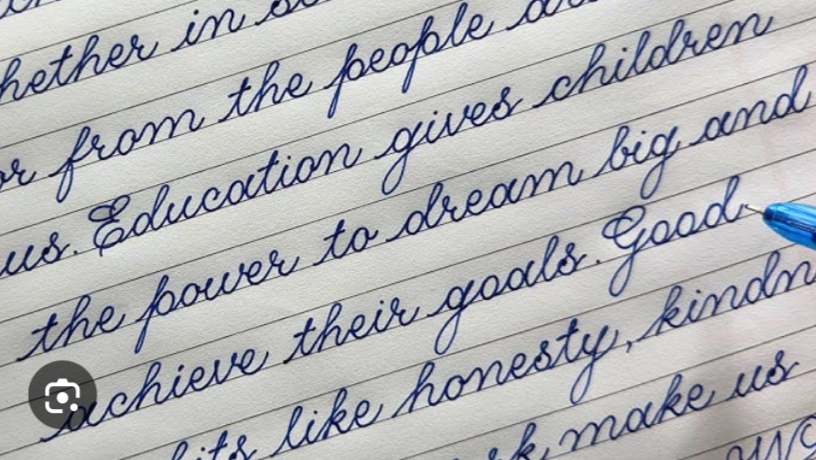 This handwriting exhibits a beautiful, flowing cursive style. The letters are elegantly formed, with consistent loops and curves, as seen in words like "education" and "achieve". There is a sense of rhythm and grace in the way the letters connect, creating a harmonious and visually appealing script. The pressure appears to be even, and the slant is consistent, contributing to the overall neatness and legibility. The generous loops in letters like 'g' and 'y' suggest a certain flair and artistic sensibility.