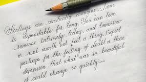 This style of handwriting suggests a personality that values beauty, harmony, and emotional expression. The consistent slant and careful letter formation may indicate a thoughtful and deliberate nature. The artistic flair evident in the looping and curves suggests a creative and imaginative individual, possibly someone who enjoys expressing themselves through various artistic mediums. The consistent style and rhythm might also reflect a need for order and structure in their life.