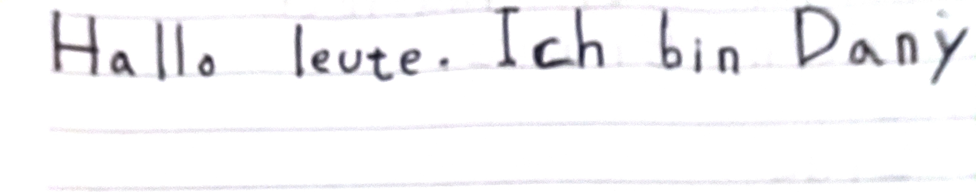 The handwriting sample displays a simple and straightforward style. The letter forms are generally rounded, with minimal embellishment, such as the letters in the phrase "Hallo leute". The strokes are firm and direct, but the writing also shows signs of being slightly hesitant. The writing has good spacing between letters and words, which enhances readability.