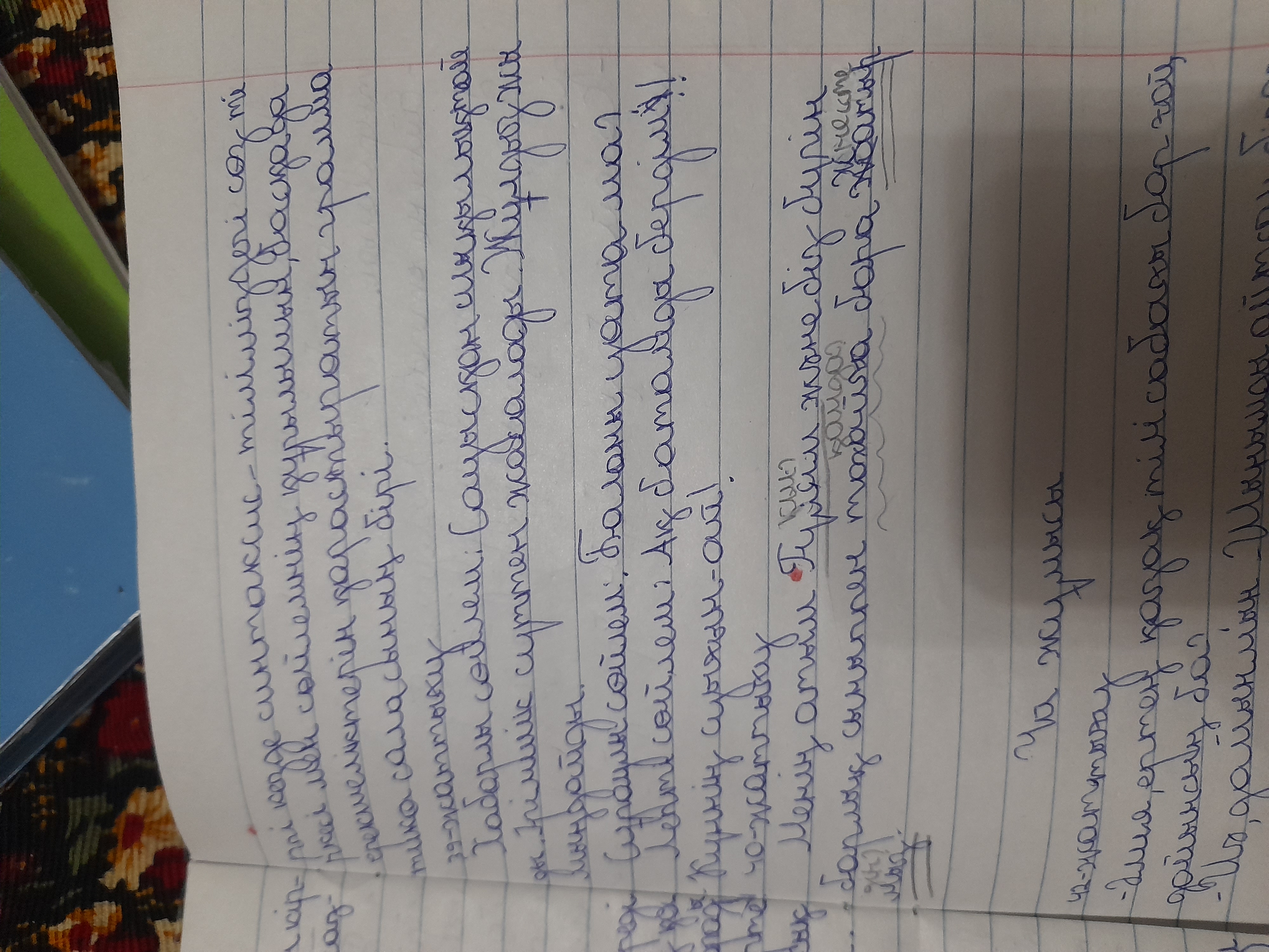 The handwriting displays a blend of rounded forms and angular connections, as seen in the looping 'ะท' and the sharper 'ั'. There's a slight rightward slant, and the pressure seems consistent throughout, indicating a steady hand. The size of the letters is moderate, with fairly consistent spacing between words. Overall, the handwriting appears reasonably neat, though not meticulously so, and is generally legible, although some familiarity with the script would be beneficial. The baseline adherence varies slightly, giving the writing a touch of informality.