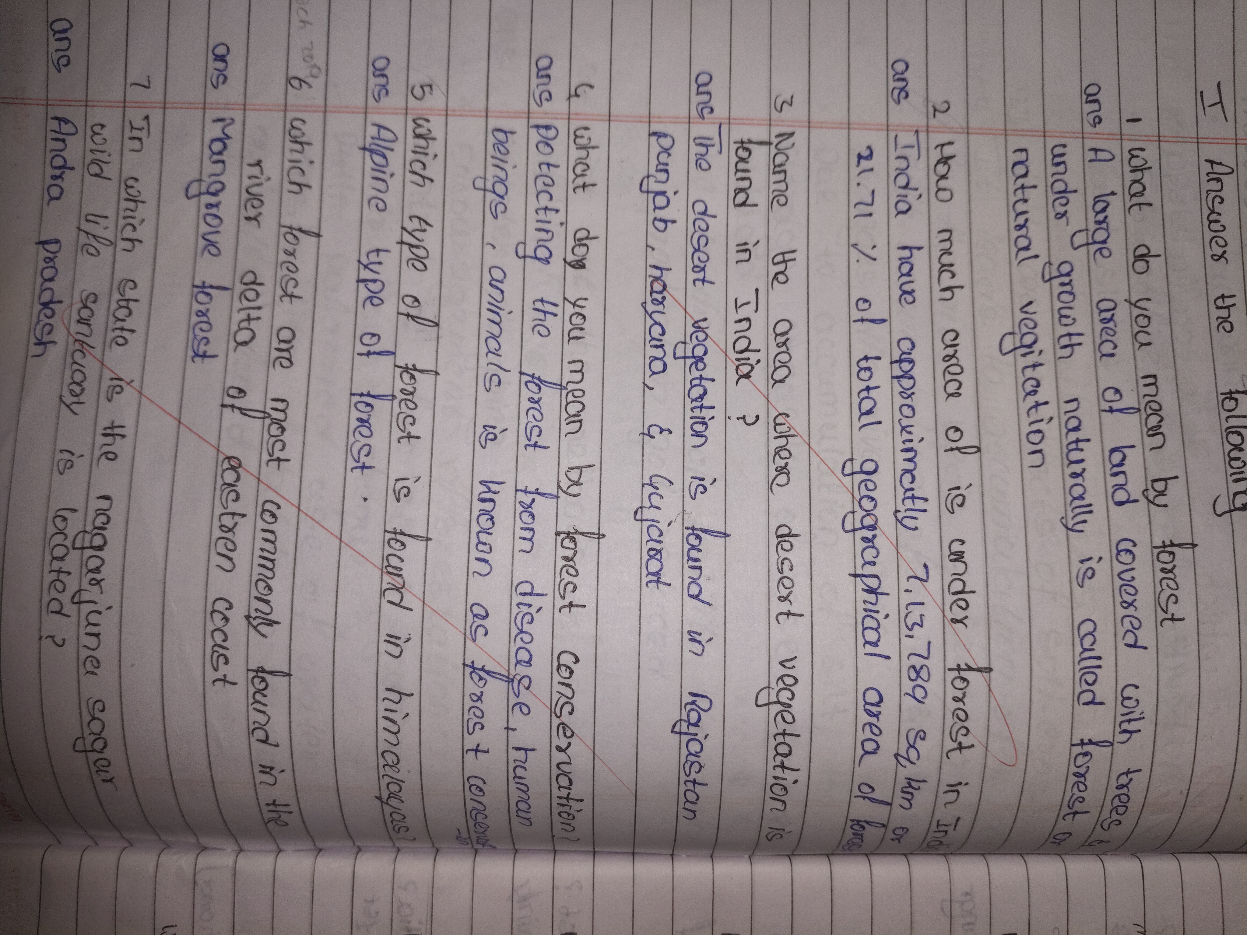 The handwriting presents a rounded and upright style, evident in words like "India" and "forest". The strokes are firm and generally consistent, suggesting a degree of control and purpose. Letter formations are clear, and spacing is generally well-maintained, contributing to overall legibility. However, there is some inconsistency in letter size and slant across the sample. The pressure applied seems moderate, indicating a balanced approach.