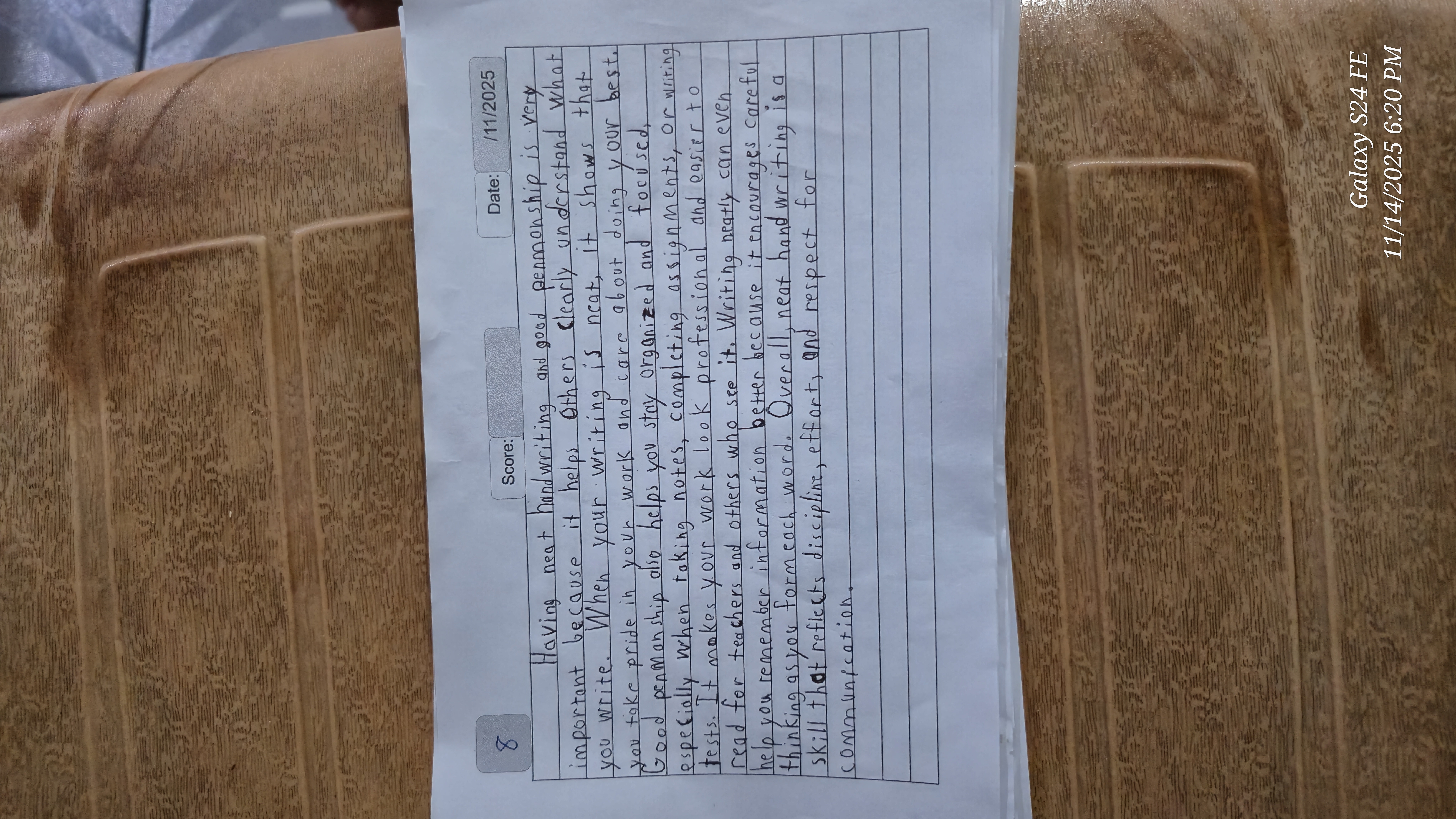 Based on this handwriting, the individual likely possesses traits such as conscientiousness, attention to detail, and a desire to present oneself in a positive light. The emphasis on organization and focus suggests a disciplined and goal-oriented nature. There's also an indication of respect for others, as the handwriting aims to be easily understood by "teachers and others".