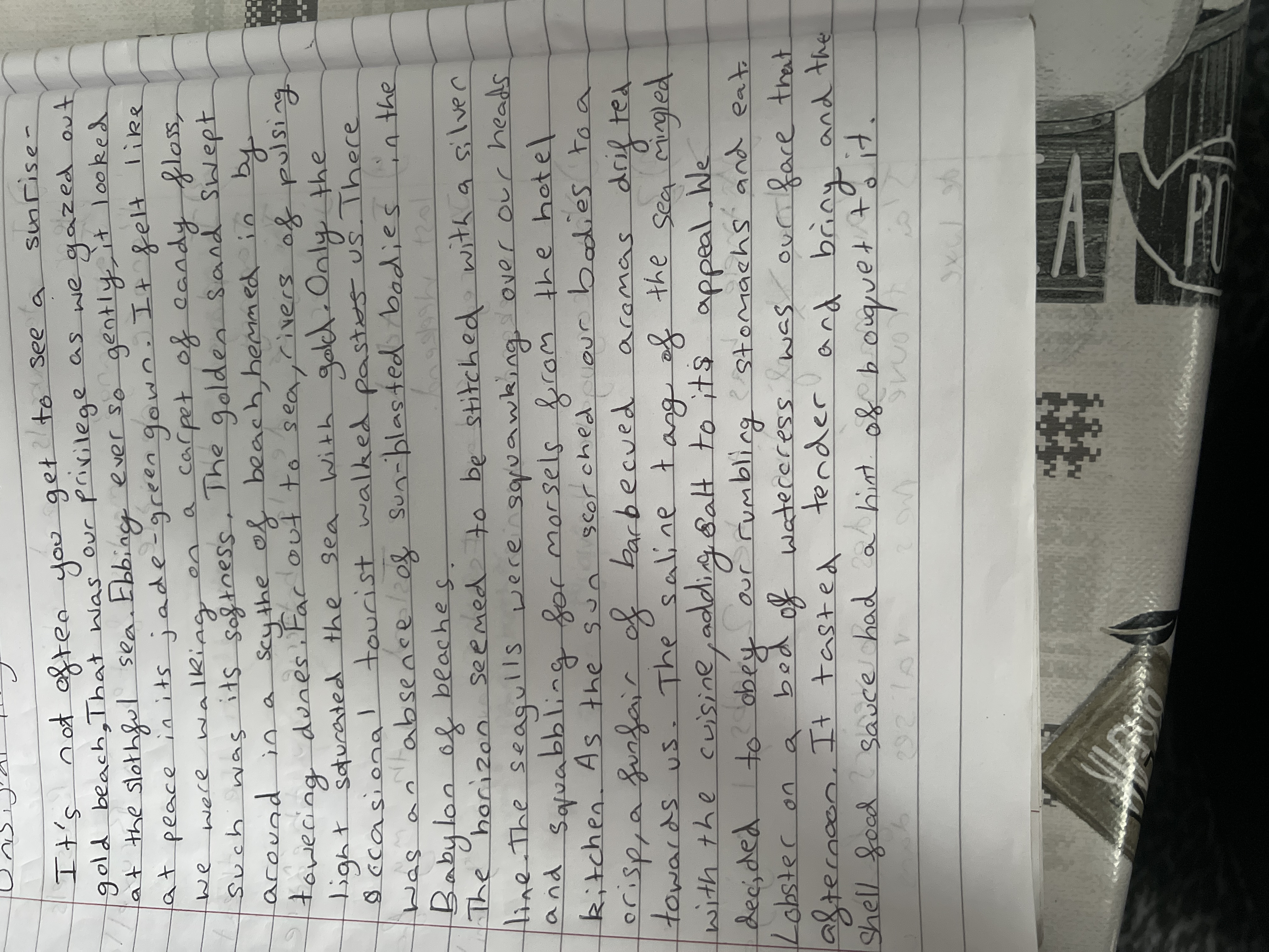 To improve, focus on maintaining consistent letter sizing, especially the lowercase letters. Paying attention to the baseline, and trying to keep the writing parallel with the line, could enhance legibility. Also, a more distinct differentiation between letters like 'n' and 'u' would aid in clarity. The overall impression is pleasant, but consistency could be refined.