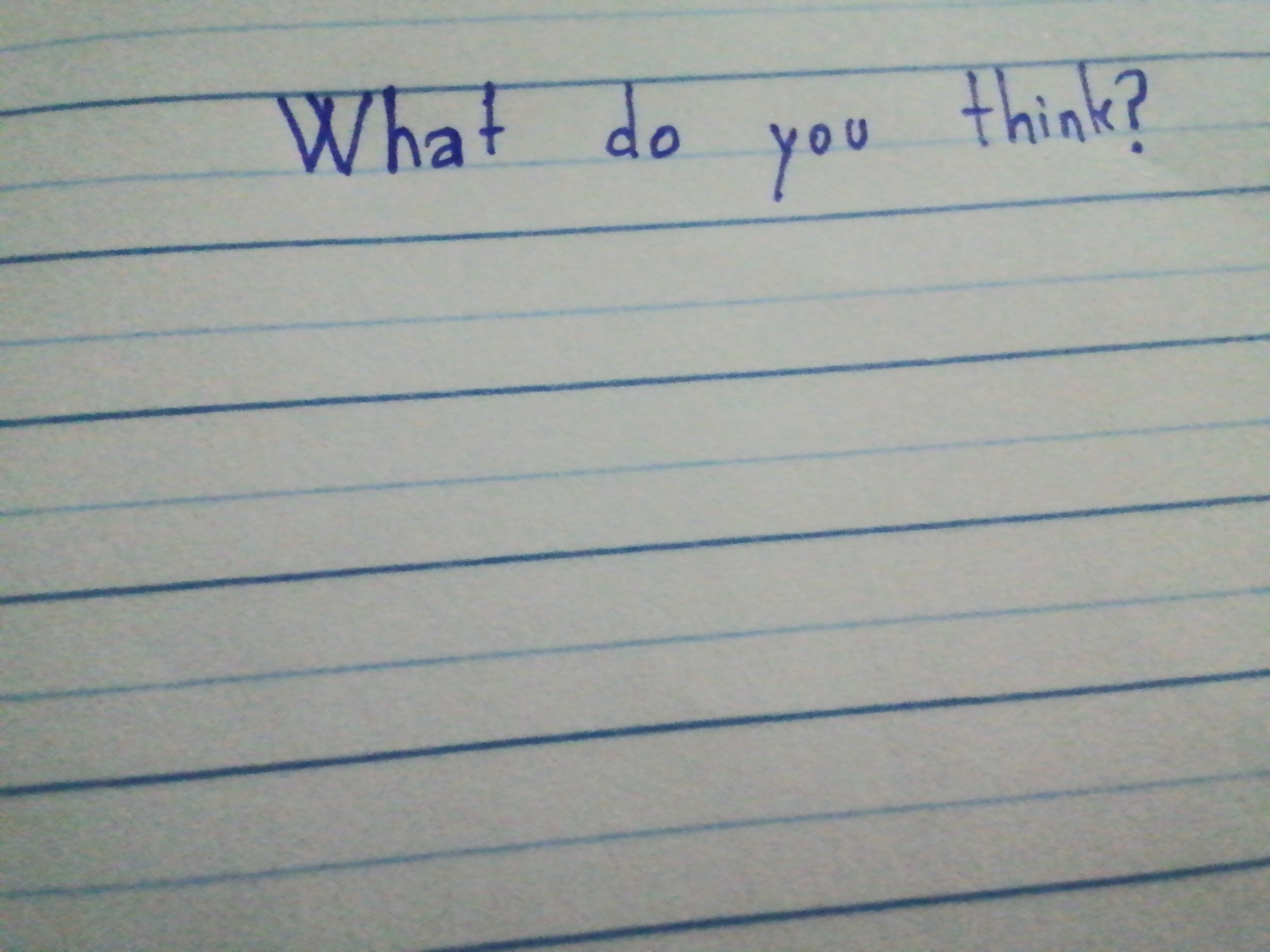 The handwriting sample presents a straightforward, printed style. The letters are formed with a basic simplicity, exhibiting a relatively consistent size and spacing throughout the phrase "What do you think?". The strokes appear deliberate, with a clear separation between letters, suggesting a careful, rather than rushed, approach to writing. The handwriting is neatly aligned along the horizontal lines of the paper, which shows attention to order and presentation.