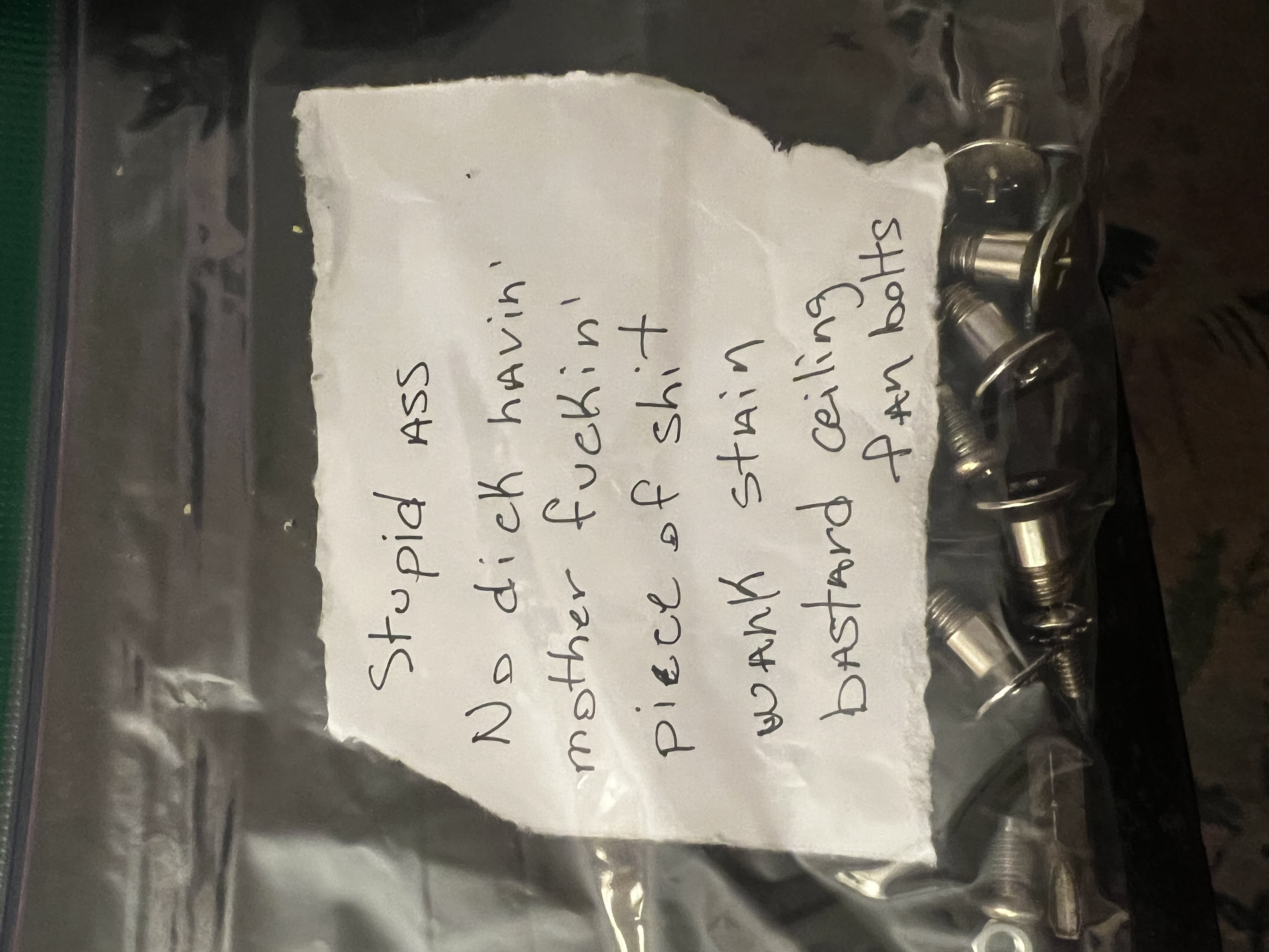 The handwriting is characterized by a vertical slant, suggesting a direct and perhaps forceful approach. The letter formation, though generally legible, displays some inconsistencies in size and spacing, giving it a somewhat erratic appearance. Noticeable features include the angularity of letters such as the 'A' in "ASS" and the 'S' in "Stupid", and the varying pressure applied, evident in the darker and thicker strokes in words like "fuckin'".