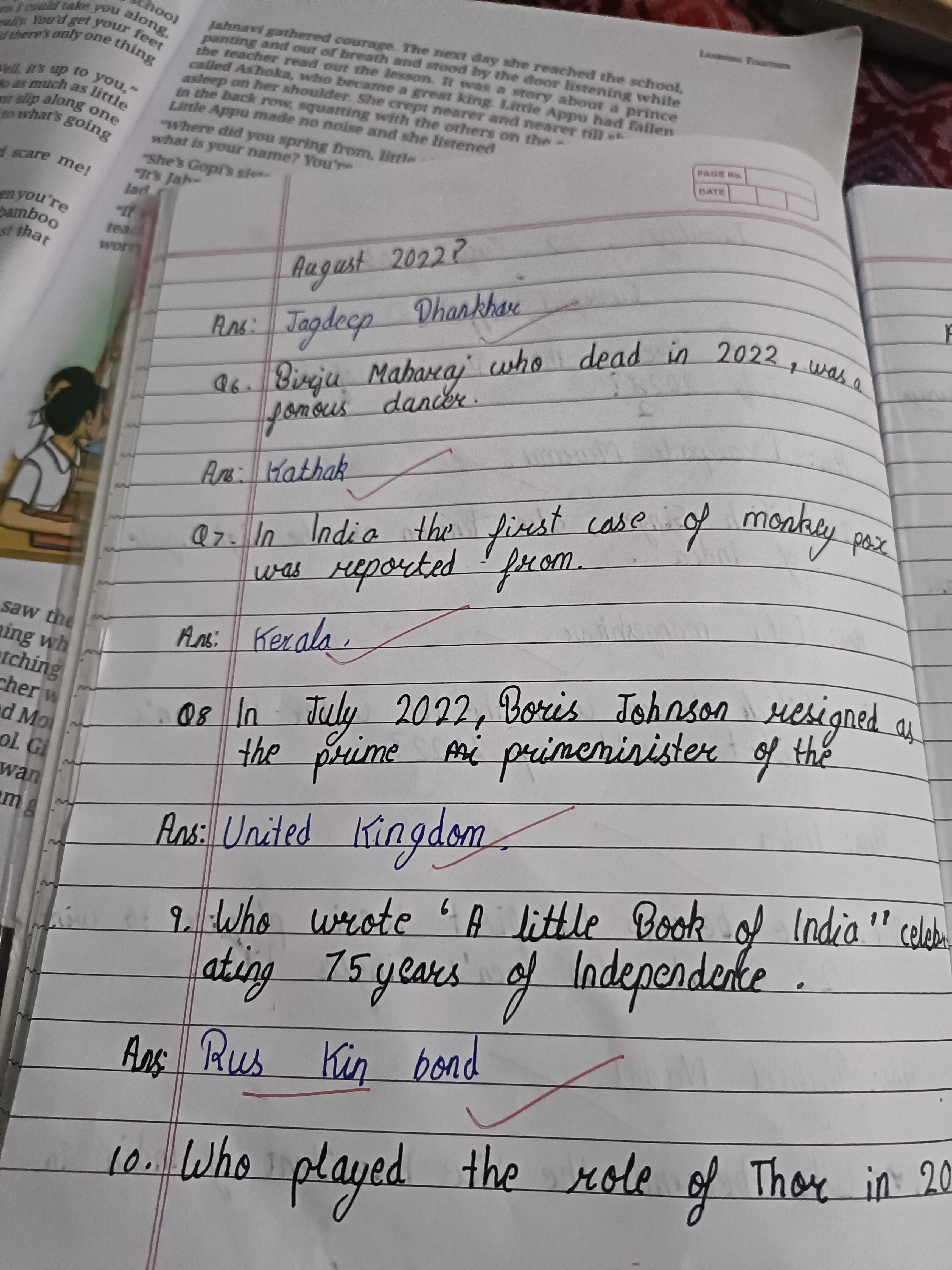 The handwriting is neat and well-formed, exhibiting a round, almost childlike quality. There's a clear effort towards legibility, with consistent letter sizing and spacing. Words like "Jagdeep Dharkhar" and "United Kingdom" show a steady hand and careful execution. The overall impression is of someone who takes pride in their work, ensuring it's easily readable and aesthetically pleasing.