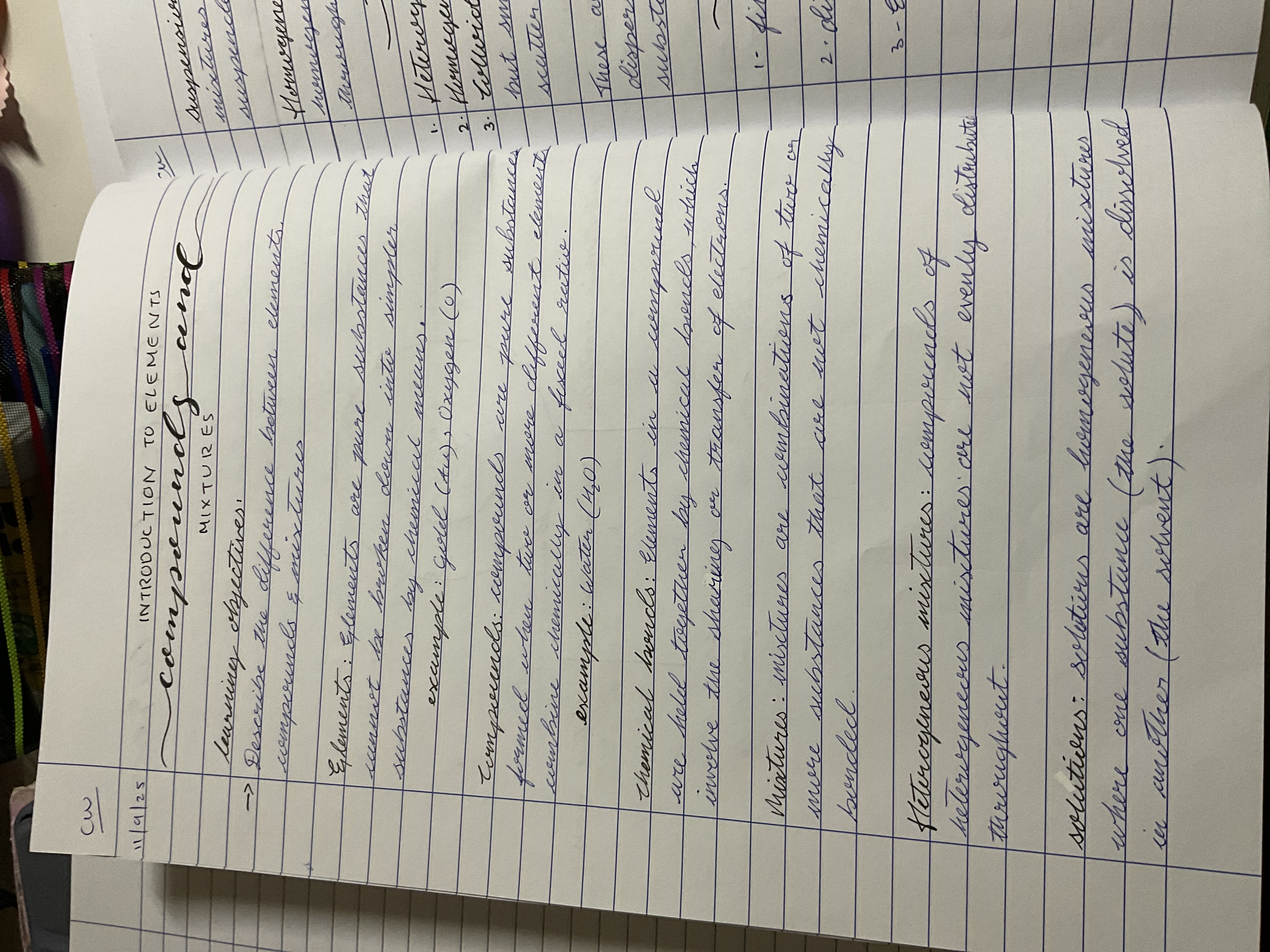 The handwriting is characterized by a neat, almost architectural precision. Each letter is carefully formed, with a consistent slant and uniform spacing, as seen in words like "Elements", "compounds" and "mixtures". The pressure is even, indicating a steady hand and controlled execution. The overall impression is one of meticulousness and attention to detail. There's a slight roundness to the letterforms, softening what might otherwise be an overly rigid style.