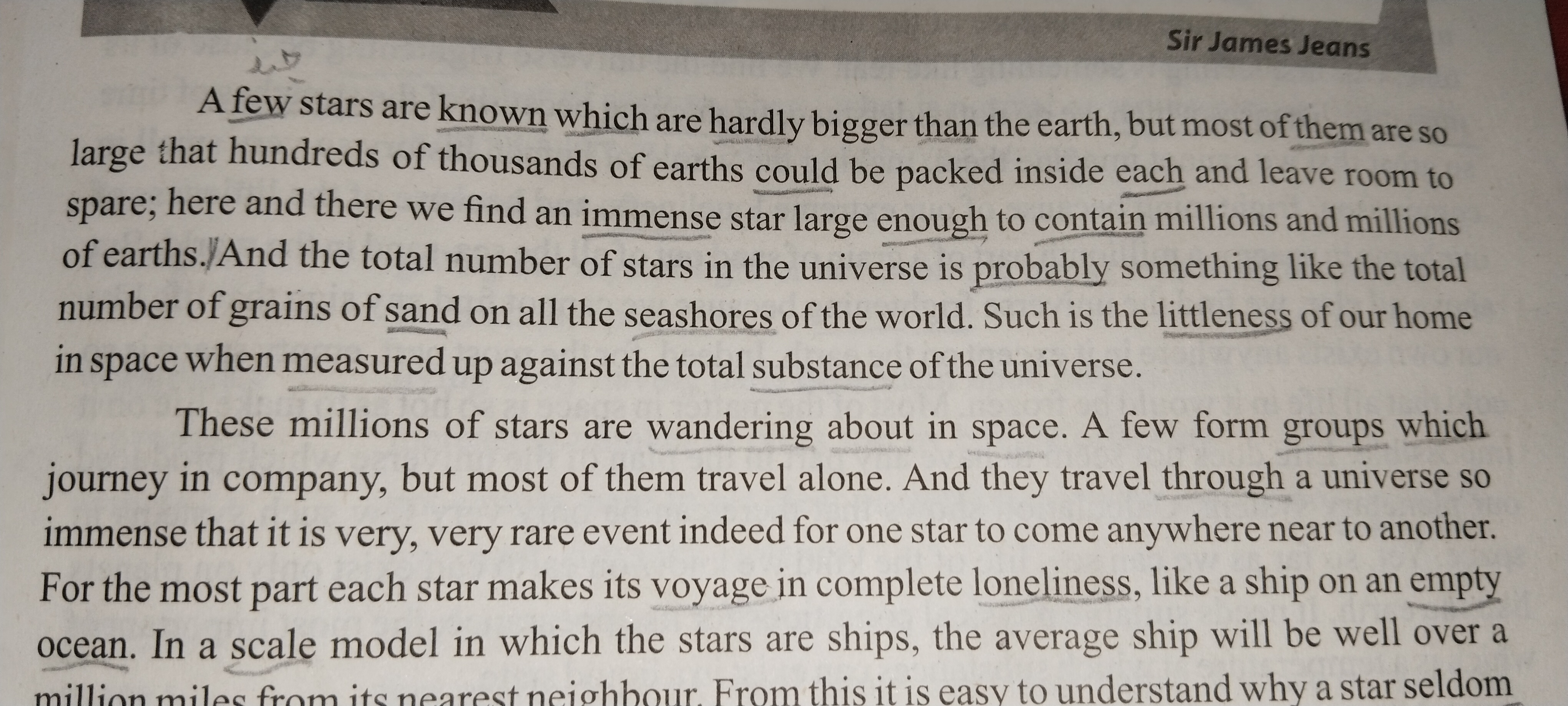 The handwriting exhibits a neat, upright style with a certain uniformity. Letters are well-formed, and the spacing is generally consistent. The words 'A few stars are known' are carefully crafted, showing a deliberate approach to writing. Overall, there's a sense of order and control, with a clear effort made towards legibility, although it resembles print more than cursive script.