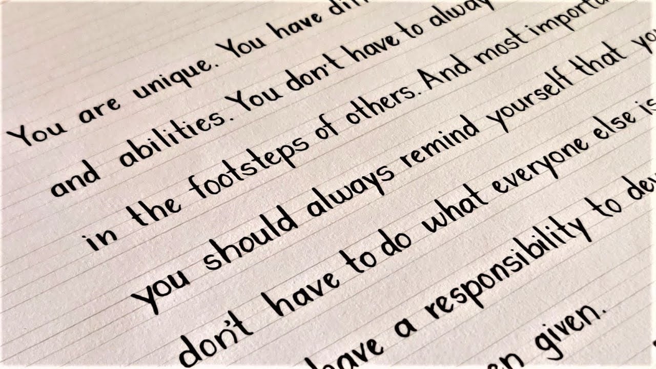 This handwriting style reflects a personality that values clarity, order, and self-discipline, with potential for more personal flair. Introducing variations in letter size and stroke could enhance its expressiveness.