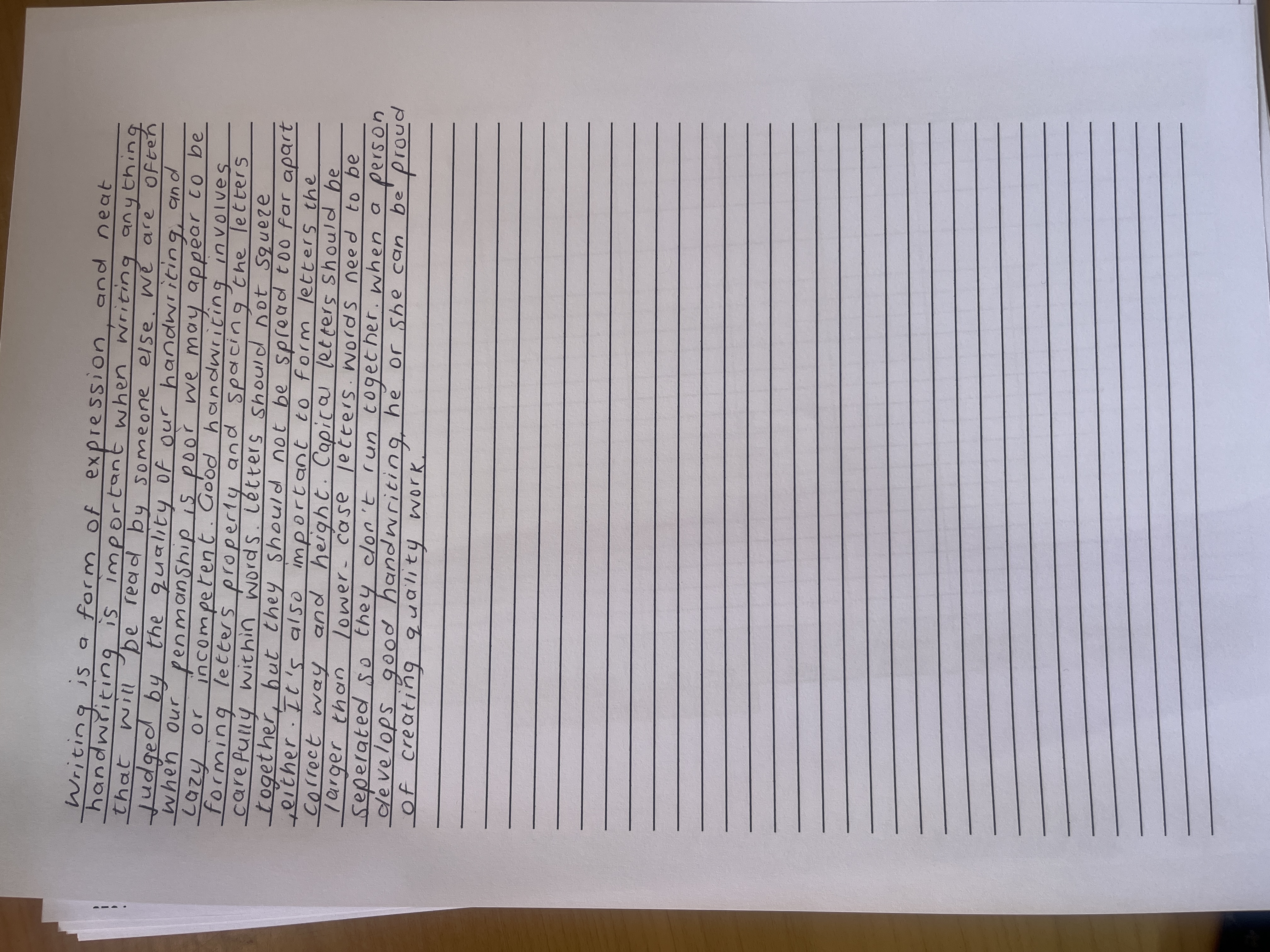 Based on this handwriting, it's possible to infer a personality that values neatness, precision, and control. The writer likely possesses a conscientious nature, paying close attention to detail and striving for accuracy in their work. They may also be someone who appreciates structure and order, finding comfort in routines and established patterns. The deliberate style suggests a thoughtful and methodical approach to tasks.