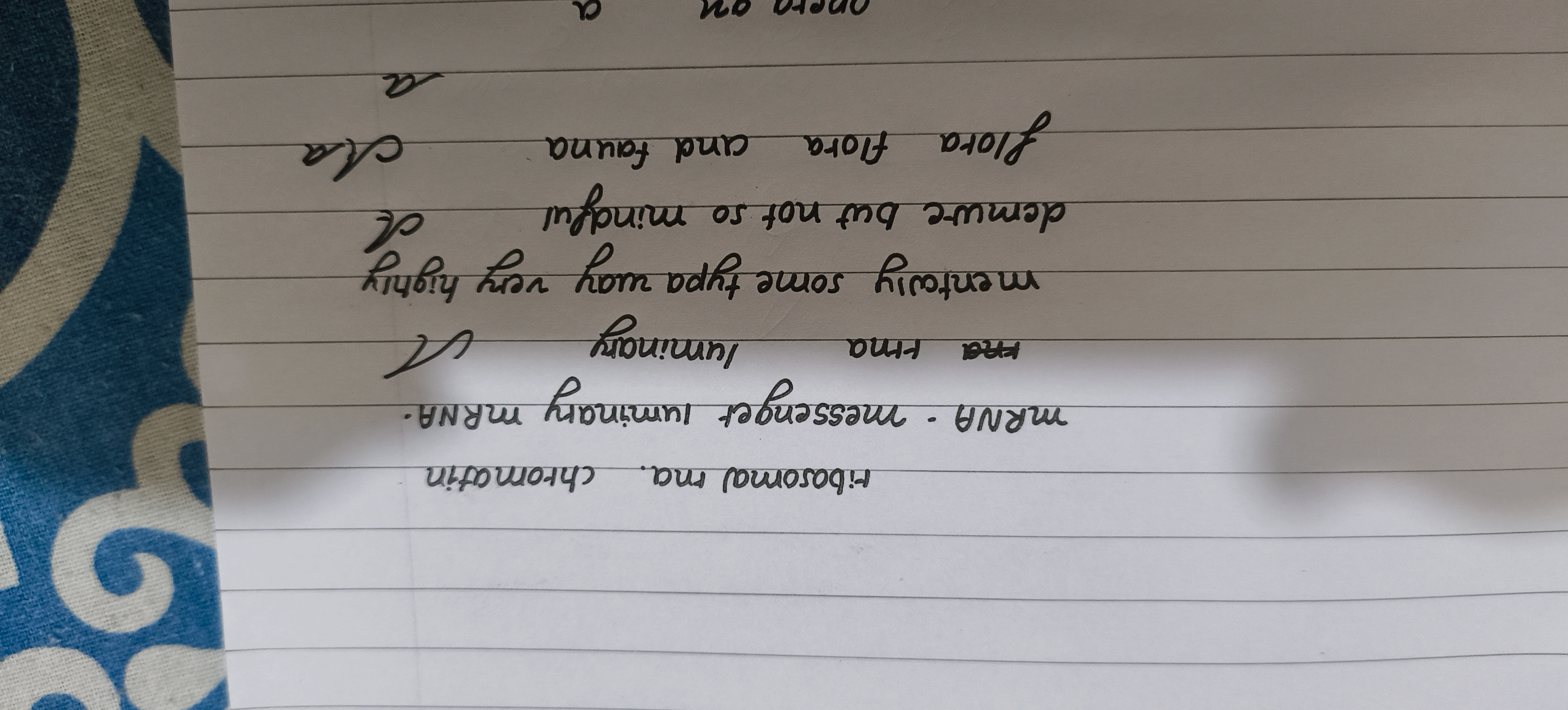 This handwriting presents a unique blend of careful execution and subtle flair. The rounded forms of letters, such as in "mRNA" and "flora," suggest a deliberate approach to writing, while the upward slant of lines like "mentally some type way very highly" injects a sense of energy and optimism. The consistency is admirable, though the size of the letters varies slightly, hinting at a writer who is both disciplined and adaptable. Legibility is generally good, though some words might require a second glance due to the cursive style.