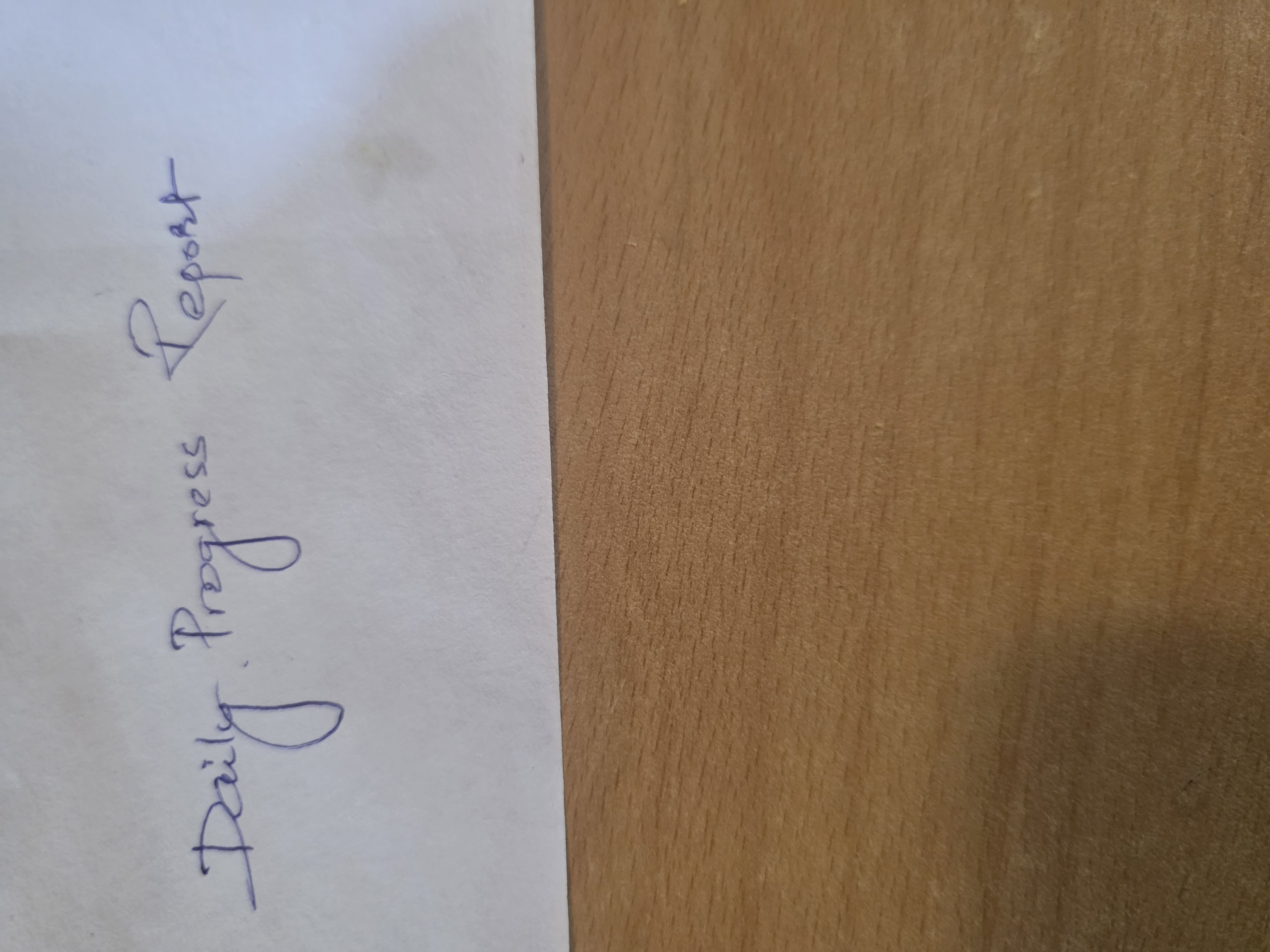 The handwriting is upright and clear, tending towards a simplified style, as seen in the letters of the words "Daily Progress Report". The size is relatively consistent, though there's a slight variation. The pressure appears even, and the strokes are deliberate rather than rushed. The writing exhibits a functional quality, prioritizing legibility over flourishes.