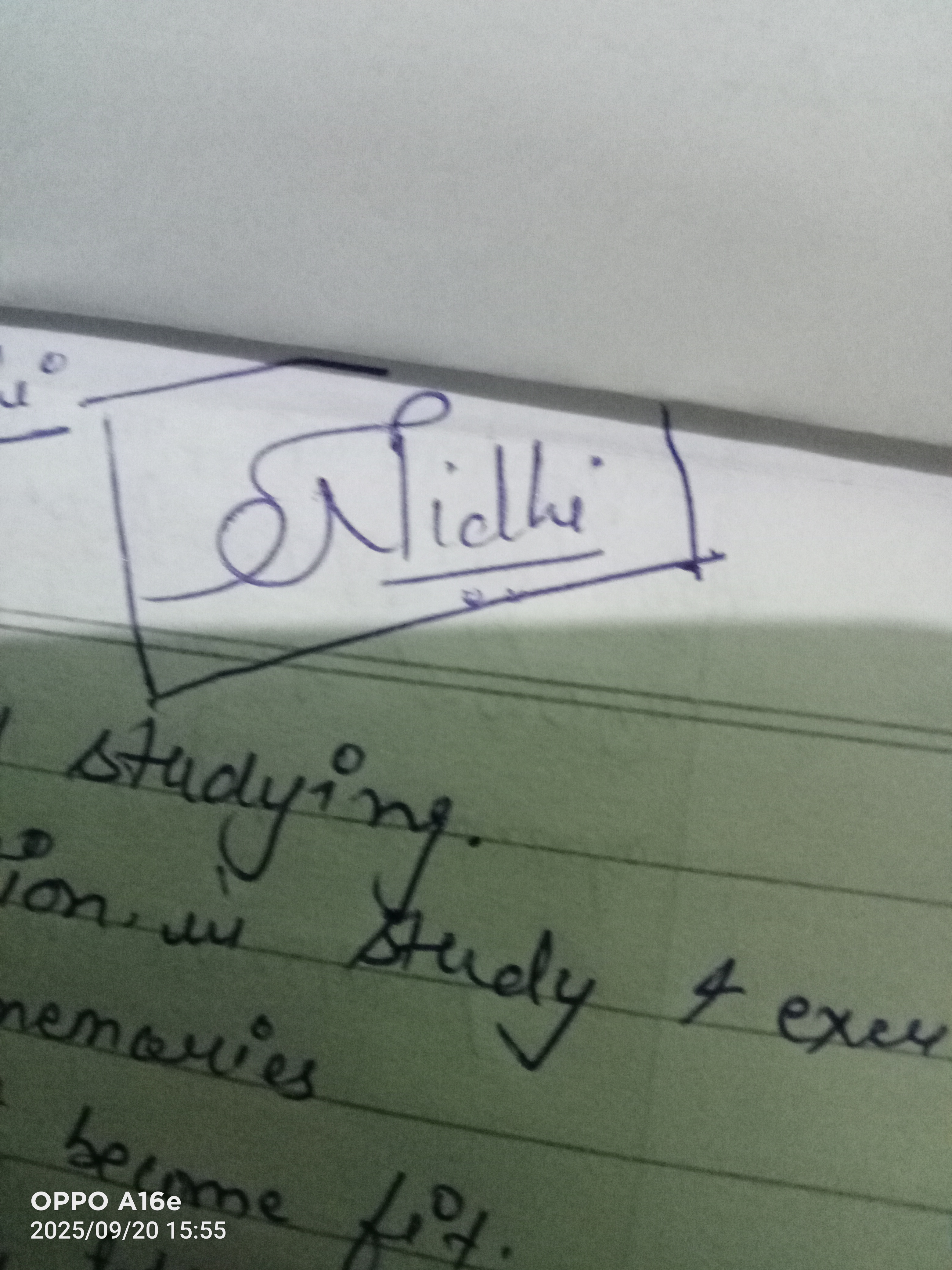 The handwriting exhibits a mix of rounded and angular forms. The word "studying" shows a flowing, connected style, while the letters in "study" and "exercise" appear more detached and angular. The size is generally consistent, although there's some variation in the letter height. The slant is slightly to the right, and the baseline undulates a little, suggesting a certain spontaneity. Overall, the writing has a neat and legible appearance, though with room for refinement.