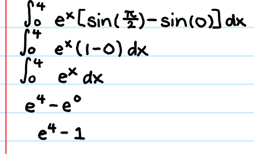 This handwriting style is characterized by its clear, rounded letterforms and upright slant. The mathematical notation, such as the integral symbols '∫' and exponents like '4', are carefully formed, indicating a methodical approach. The spacing between letters and words is generally consistent, promoting readability. There is a certain childlike quality, reminiscent of early educational textbooks, especially in the writing of the numerals and the '+' and '-' signs. The handwriting is fairly neat and maintains a consistent baseline.