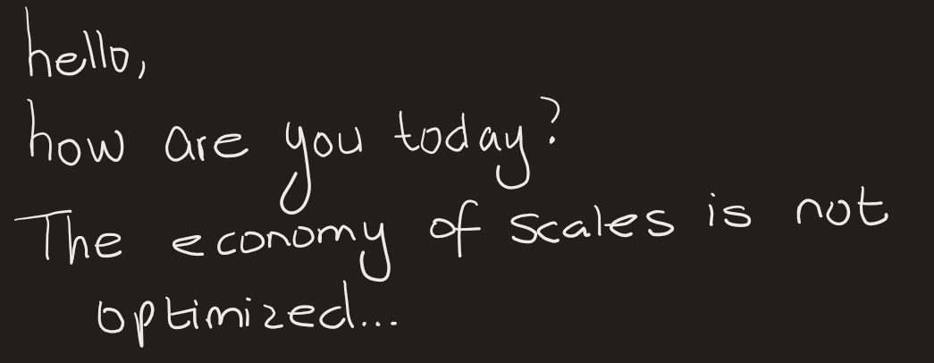 The handwriting is loopy and informal, with rounded letters that suggest a relaxed approach. The spacing between letters and words is fairly consistent, contributing to overall legibility. There's a slight slant to the right, indicating a degree of forward momentum and engagement. Words like "economy" and "optimized" are written with a certain flourish, while others are more functional, indicating a variable level of focus. The overall impression is that of someone writing quickly and without excessive concern for perfection. The size is medium, with even baseline.