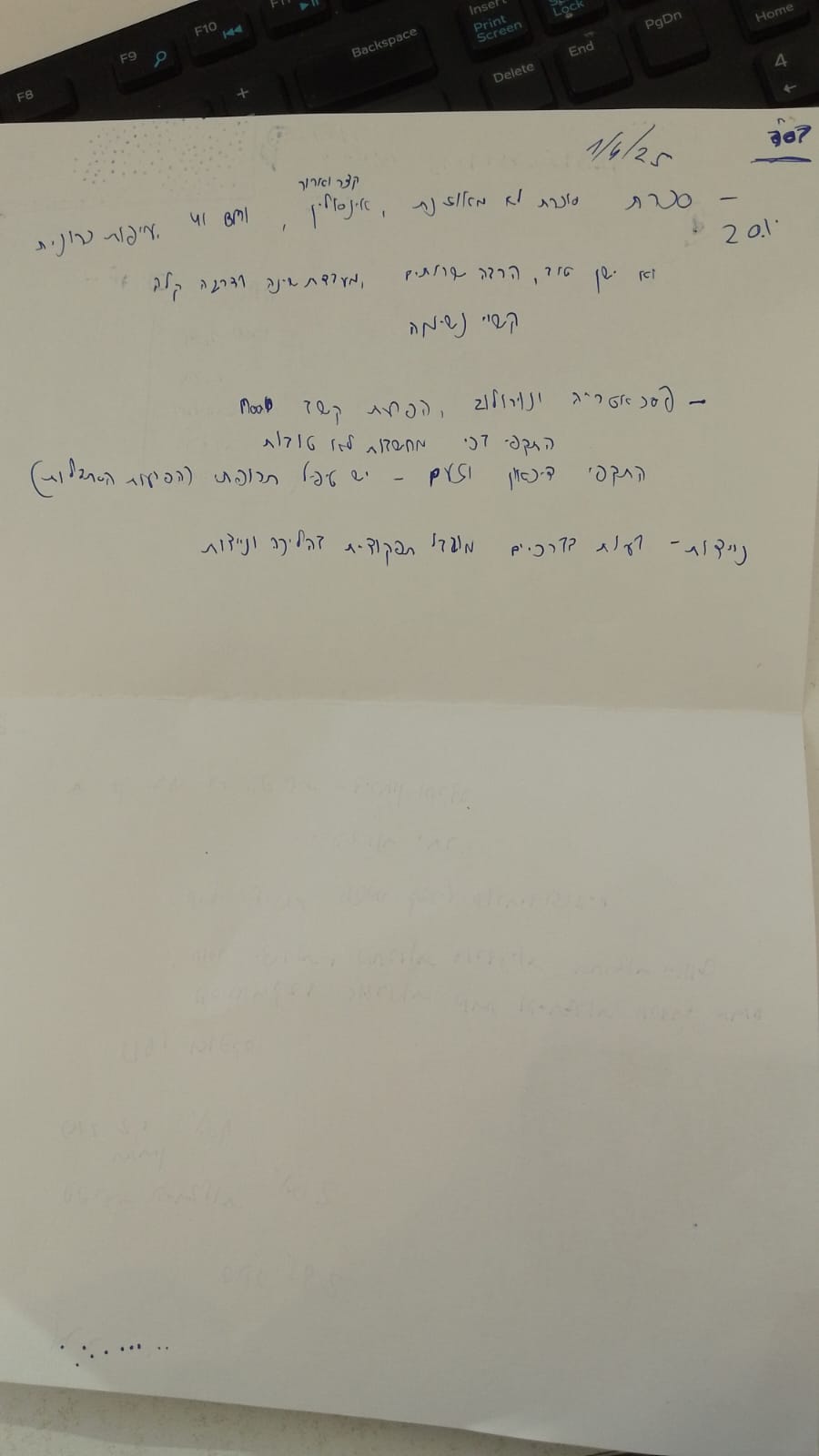 The handwriting is characterized by a rapid and somewhat erratic flow, with letters leaning in various directions, showcasing an independent spirit. The slant varies significantly, and there's an overall impression of spontaneity. The letter formations are often simplified, giving the impression of speed over precision, as seen in the abbreviated or slightly malformed words like "פרוייקט" and "סדר".