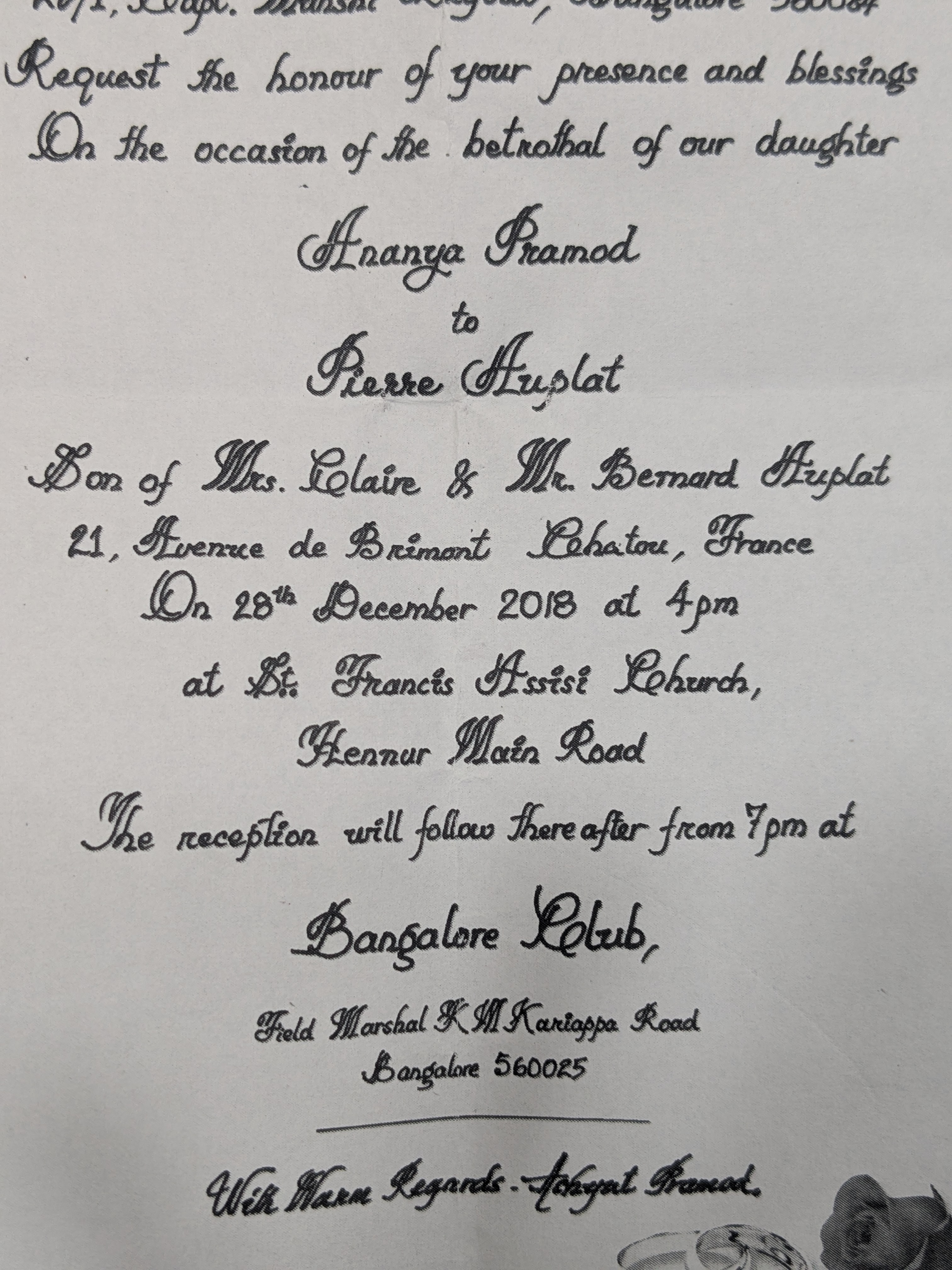 The handwriting exhibits a formal and deliberate style, evident in the consistent slant and carefully formed letters. Words like "Request," "honour," and "blessings" are rendered with a uniformity that suggests a controlled hand. The overall impression is one of meticulous attention to detail, with consistent letter sizing and spacing contributing to a balanced appearance. The consistent baseline and neatness contribute to a sense of order and precision.