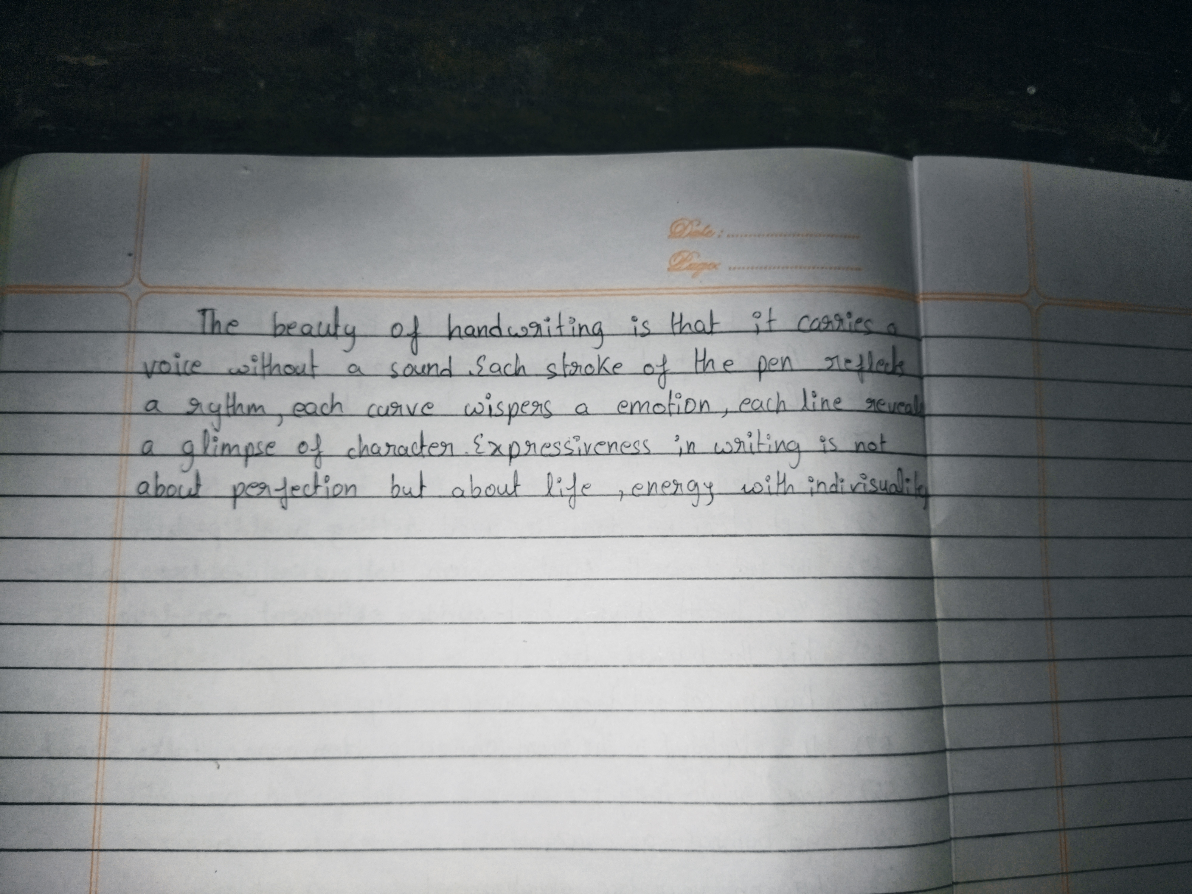 This handwriting showcases a blend of elegance and expressiveness, revealing a thoughtful and creative individual who values aesthetics. Consistency and letter formations can be improved to enhance the writing further.