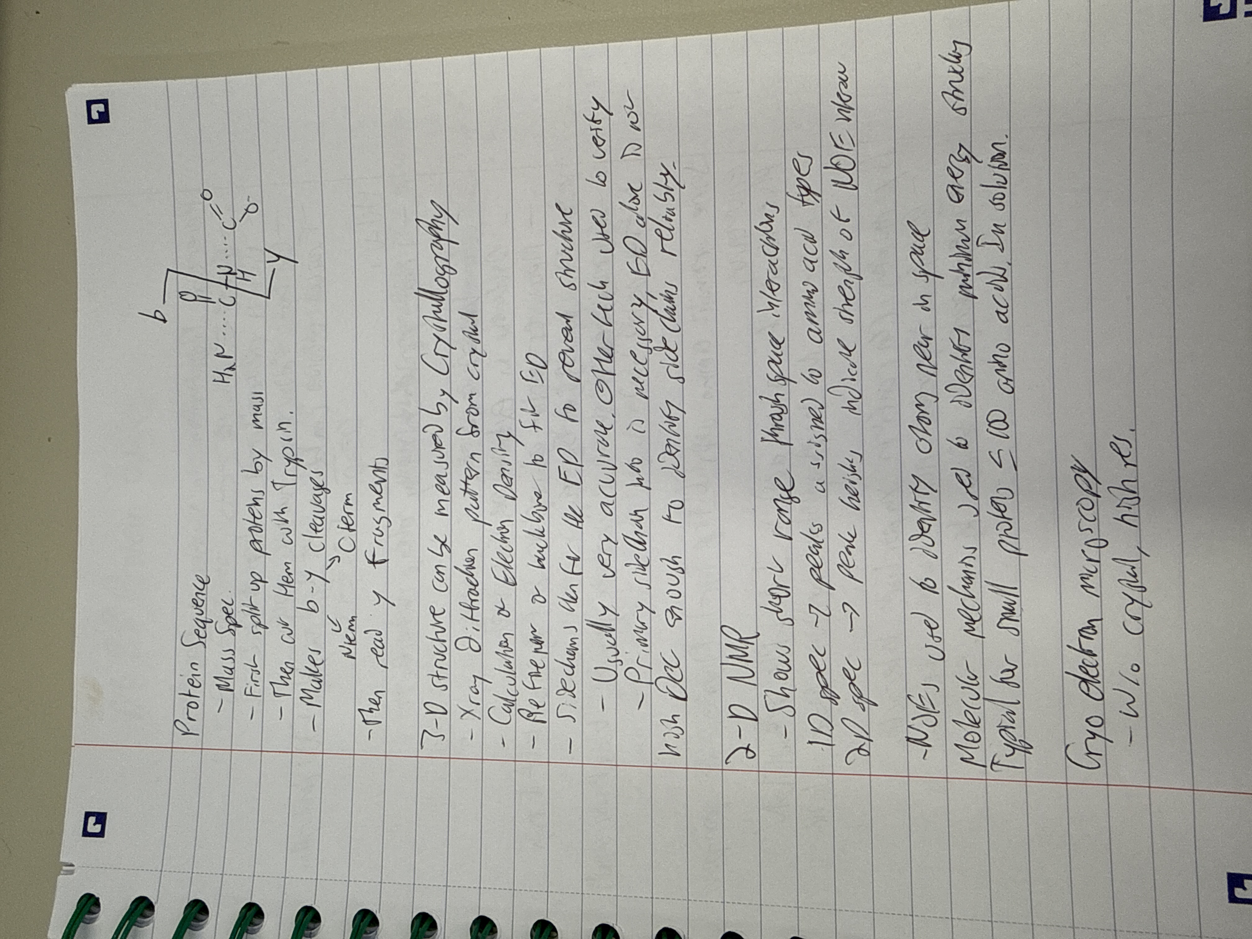 The handwriting is characterized by a practical, almost utilitarian style. There is a clear attempt at legibility, with relatively consistent letter sizing and spacing, although a slight slant to the right is evident. Words like "Trypsin" and "Crystallography" reveal an academic vocabulary. The bullet points suggest a structured, organized approach to note-taking, further highlighting a desire for clarity and efficiency.