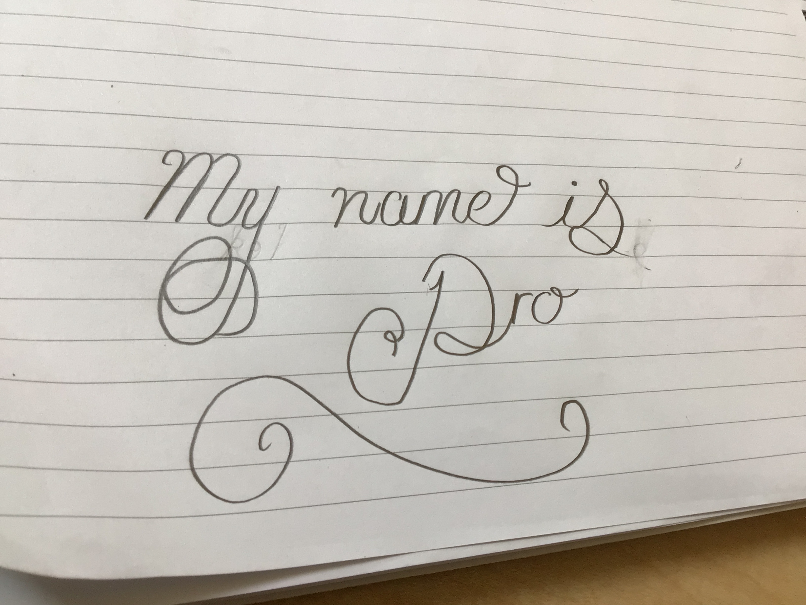 To improve the handwriting, focus on refining the consistency of letter forms and maintaining a more stable baseline. Practice writing without excessive embellishments to achieve greater clarity and legibility. Pay attention to the spacing between letters and words to create a more balanced and harmonious appearance. Experiment with different pen grips and writing angles to find a comfortable and controlled technique.
