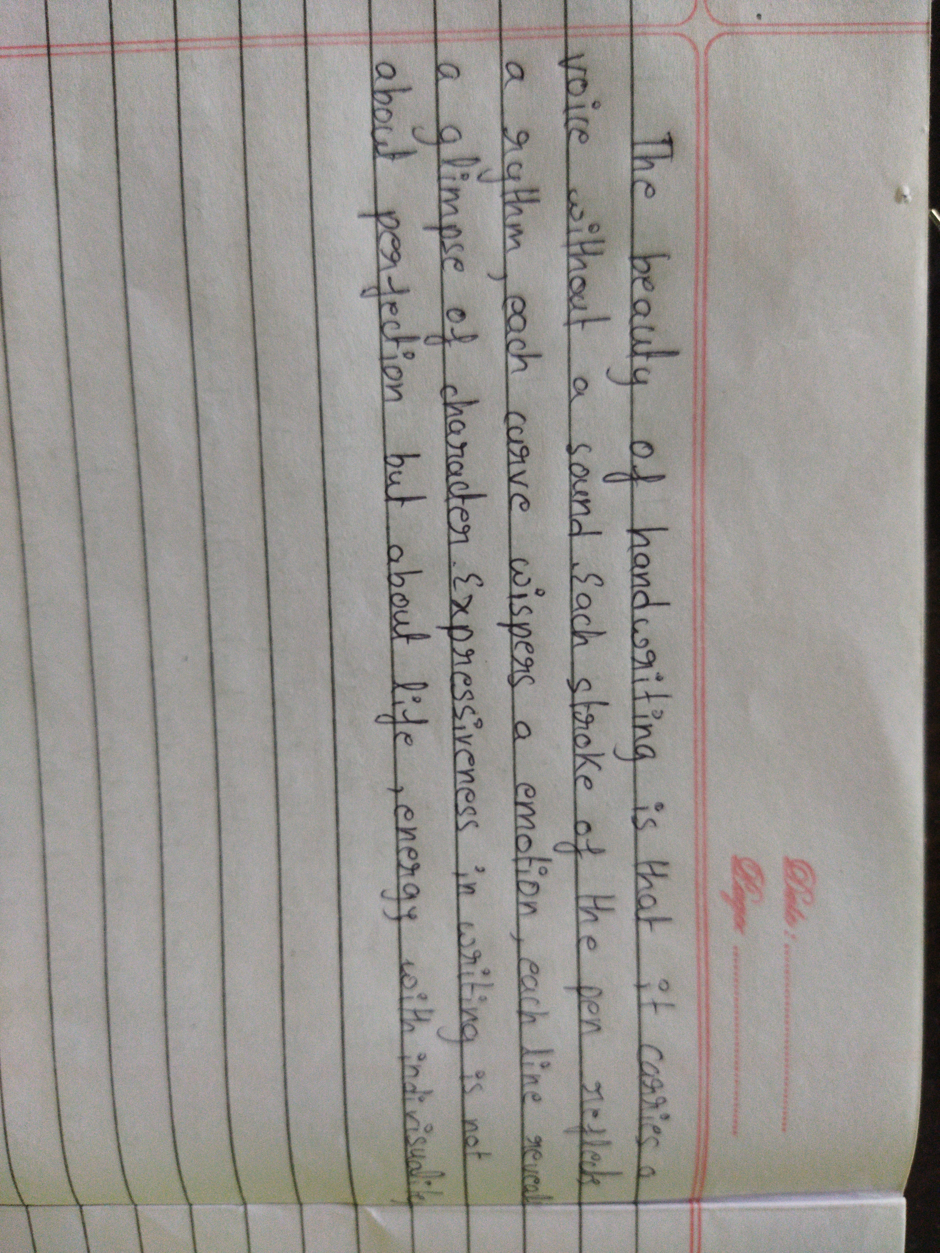 The handwriting exhibits a distinctive, almost calligraphic quality. The strokes are deliberate, with a noticeable 'rythm' in the formation of the letters. The curves are generous and flowing, particularly in letters like 'o' and 'e'. There's a consistent slant to the right, suggesting a forward-moving energy. While generally neat, there are some inconsistencies in letter size and spacing, hinting at a possible spontaneity in the writing process. The phrase 'each curve wispers a emotion' could be a good description of the handwriting itself.