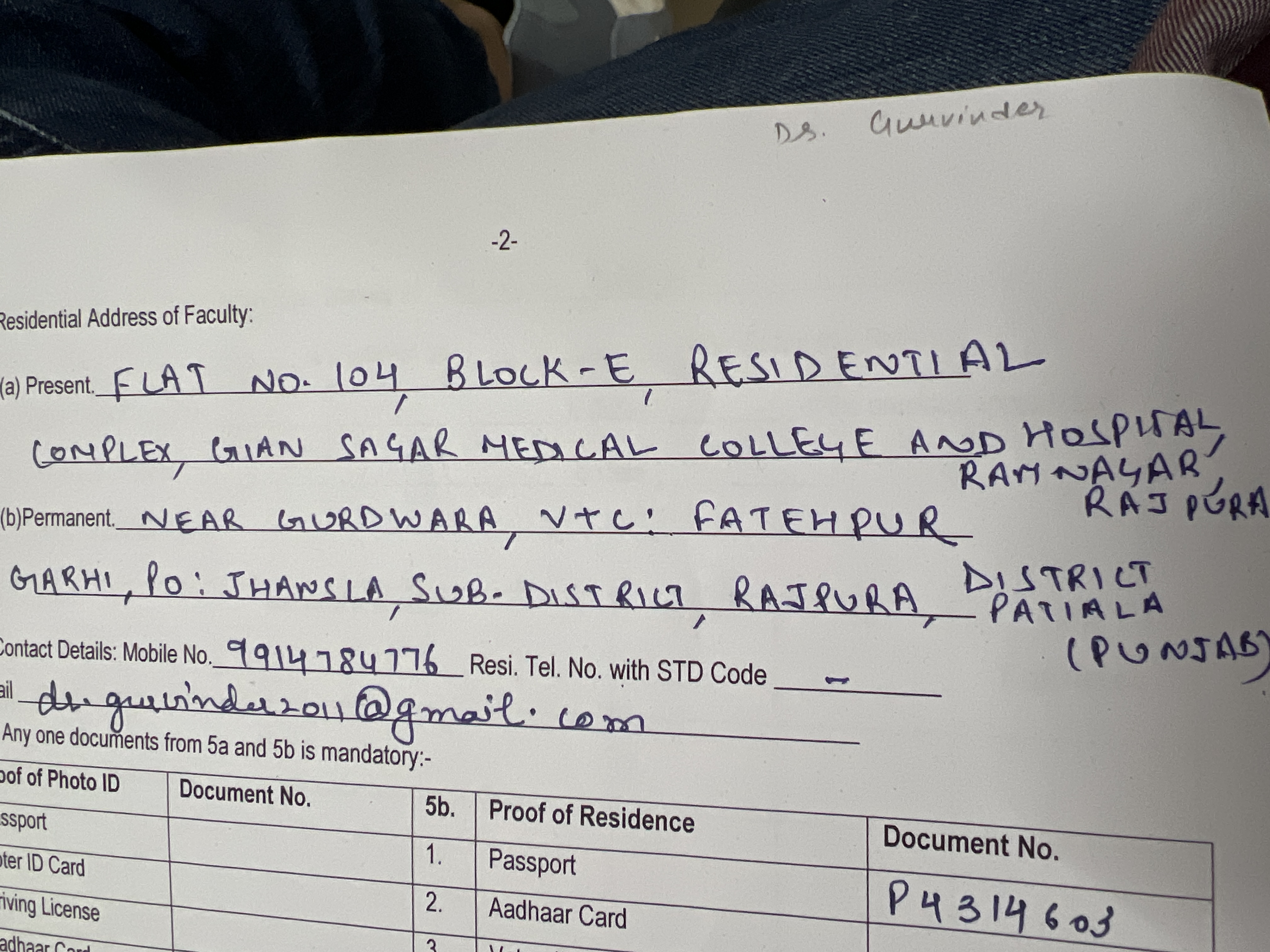The handwriting exhibits a mix of print and cursive styles, with a clear preference for uppercase letters, as seen in 'FLAT NO. 104, BLOCK-E'. The letter size is generally large and bold, occupying significant space on the page. There is an emphasis on clarity and precision, with distinct separation between words and well-formed letters. However, the consistency is somewhat variable, with occasional inconsistencies in letter slant and size. The email address is an example of cursive script.