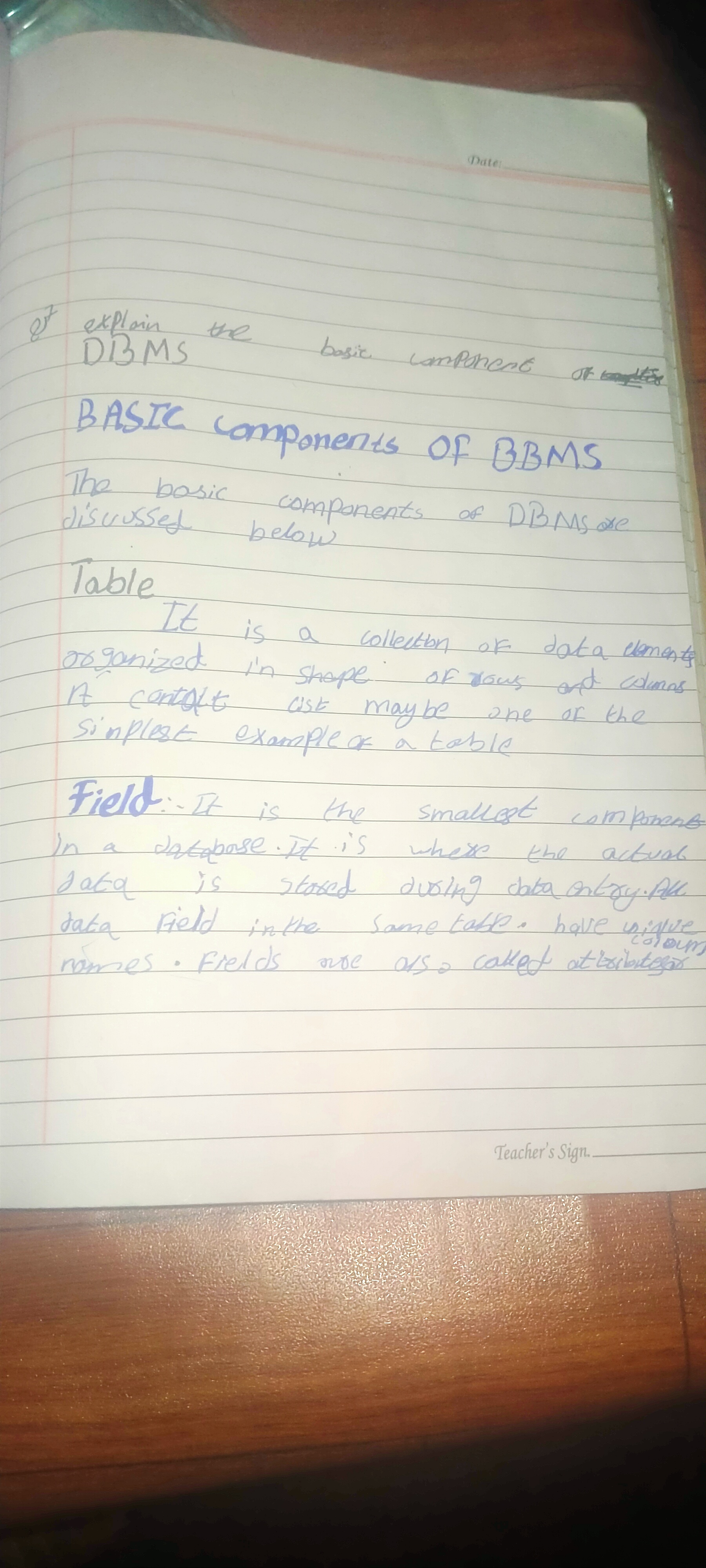 The handwriting presents as a blend of cursive and print, with rounded letterforms and a generally upright posture. The consistency varies, particularly in letter size and spacing, as can be seen in the phrase "basic component." The letter 't' is frequently crossed, and the descenders on letters like 'p' and 'g' are not particularly elongated. Overall, the handwriting leans towards legibility but lacks a strong sense of personal flair.