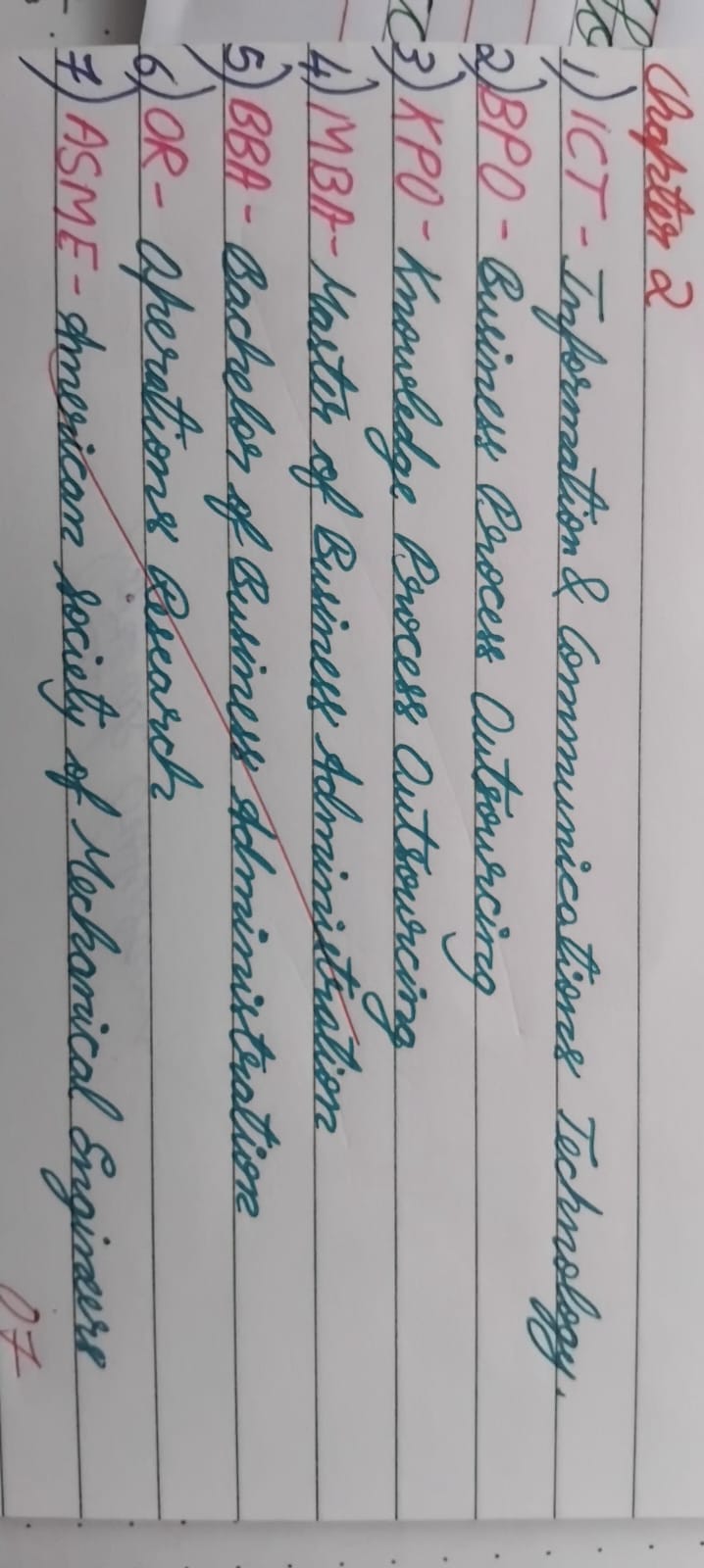 The handwriting exhibits a meticulously formed style, with clear, well-defined letter shapes, demonstrating a consistent slant and pressure throughout the sample. The capital letters are slightly larger and more ornate than the lowercase letters, particularly evident in words like "Information", "Business" and "American". The letter formation is neat and legible, reflecting a controlled and careful approach. There is good spacing between words, enhancing readability. Overall, the writing presents a clean and organized appearance, as seen in the ordered list of acronyms, each with its full description. The looping in letters such as 'g' and 'y' is graceful and not overly exaggerated.