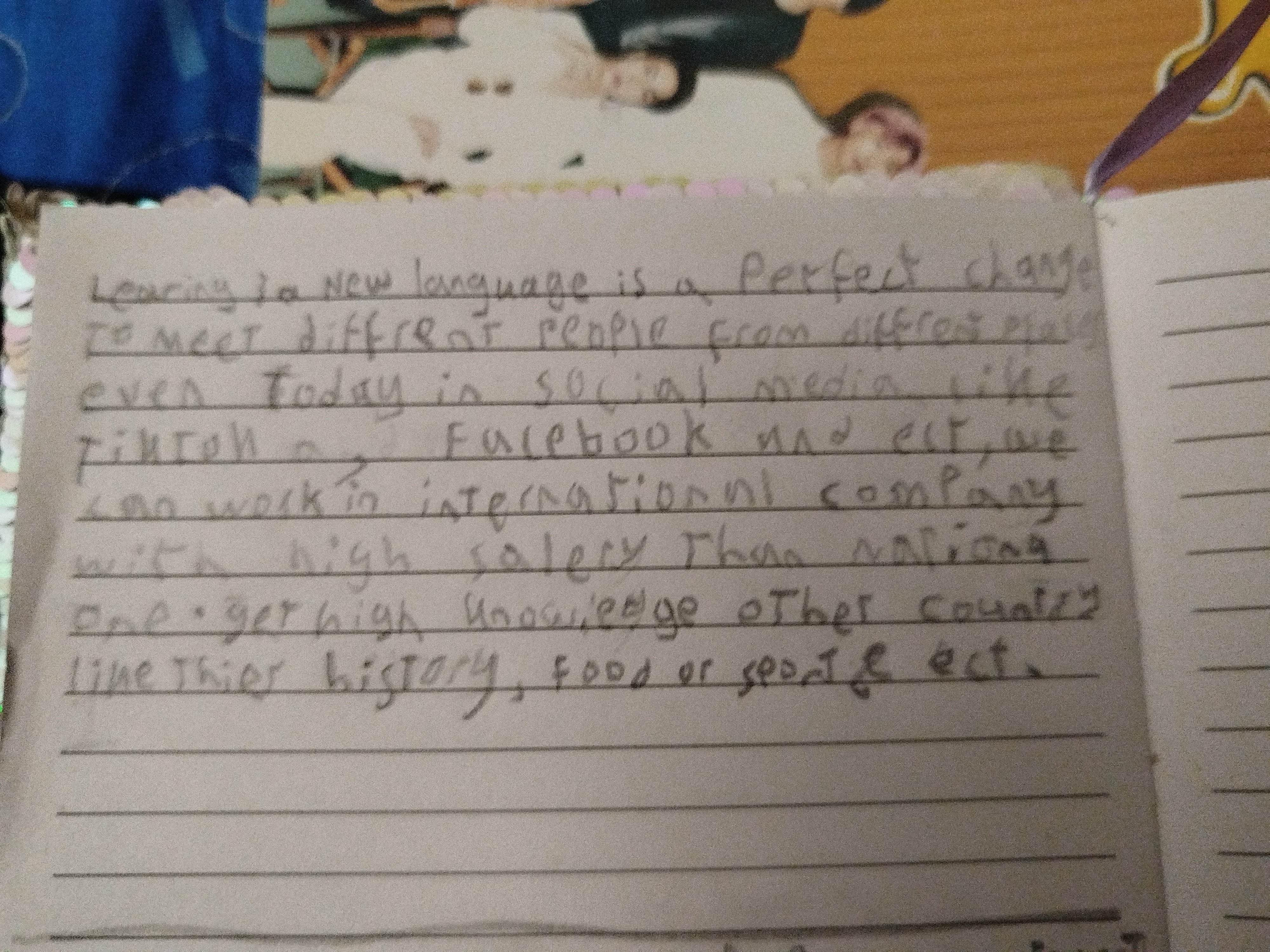 The handwriting sample presents a style that is generally upright and compact. There is a noticeable lack of consistent spacing between words and letters, making some phrases appear crowded. For example, in the phrase "perfect change" and "diffrent people" the letters are close together. The overall slant is mostly vertical, though some words lean slightly to the right. The writing seems to be functional, prioritizing conveying information over aesthetic appeal.