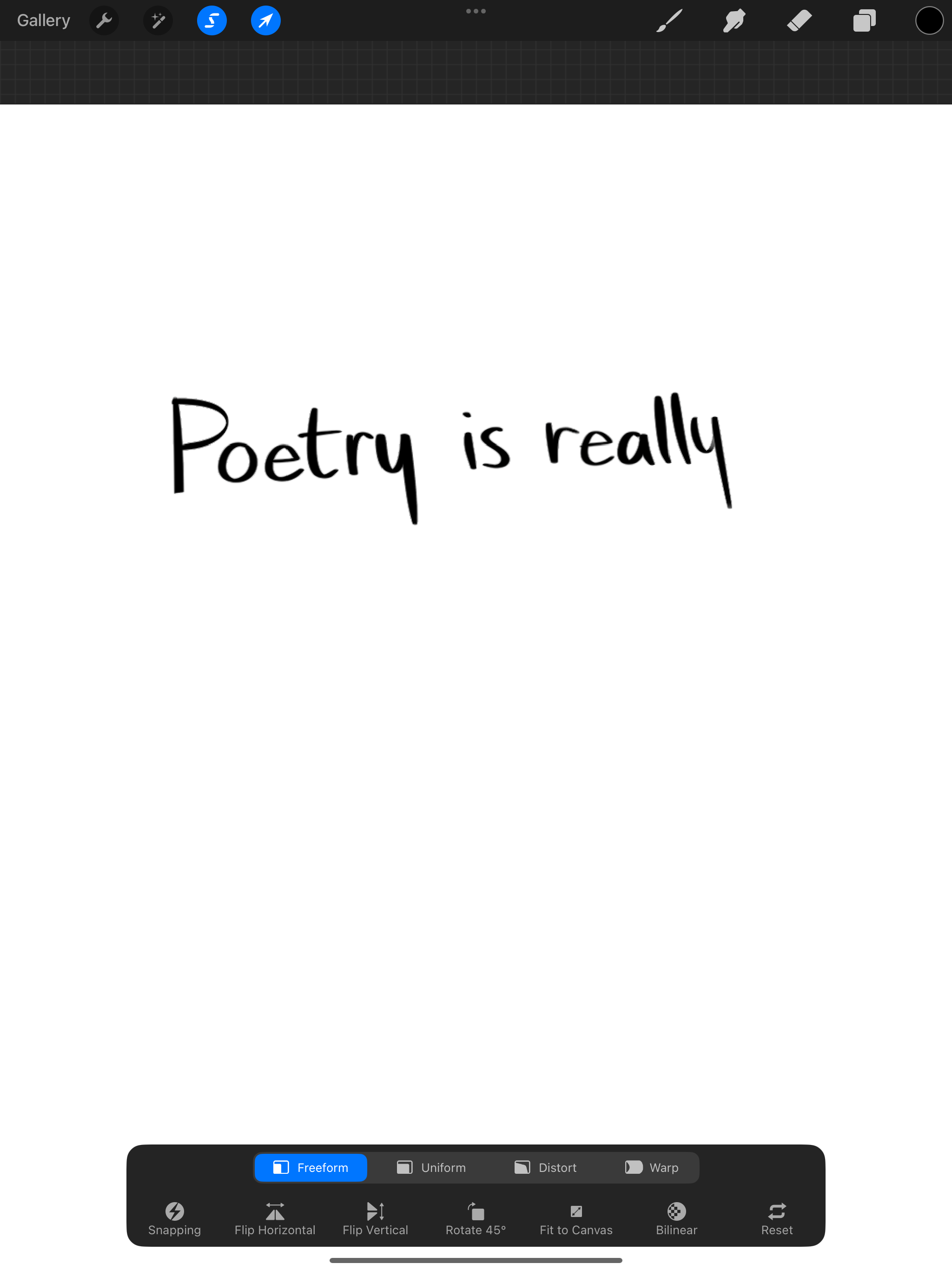 The handwriting exhibits a playful yet deliberate style. The strokes are generally firm and upright, giving a sense of confidence, with slight variations in letter size suggesting a touch of spontaneity. The spacing between words is moderate, ensuring clarity while not feeling cramped. Notice the generous loop on the 'y' in 'Poetry' and 'really', adding a flourish, contrasting with the simple, direct form of the word 'is'.