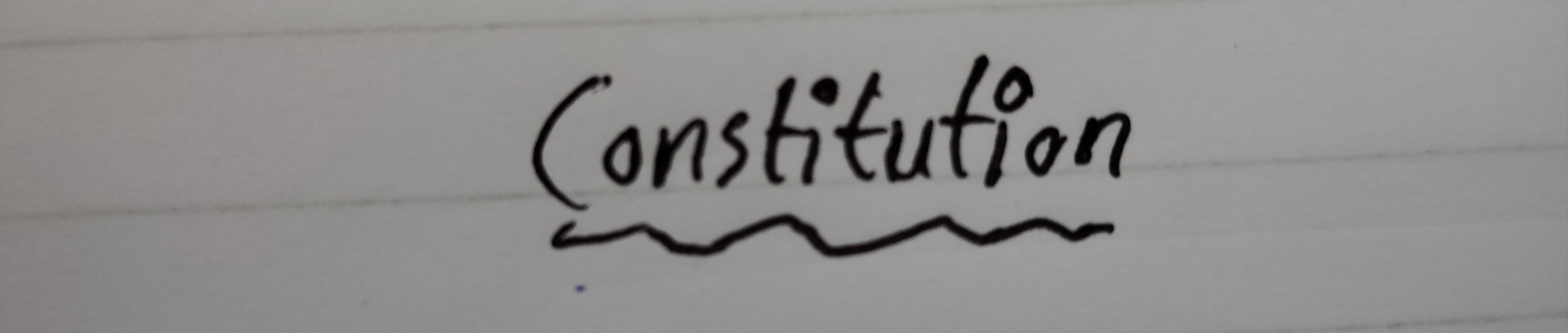 The handwriting is characterized by a playful and somewhat cartoonish style. The letters are rounded and somewhat childlike, especially the 'o' in 'Constitution' which appears almost like a zero. The baseline meanders slightly, and the flourishes underneath the word add a touch of whimsy. The writing appears confident and deliberate, though not particularly elegant.
