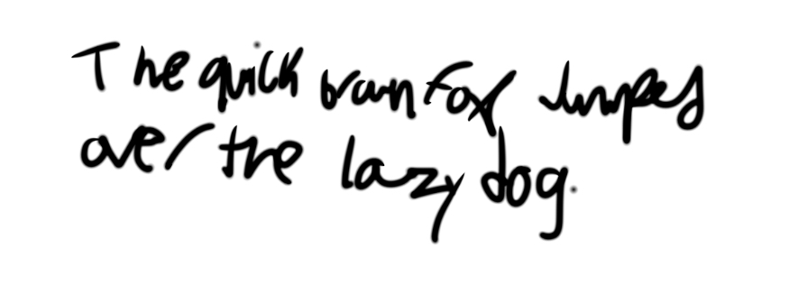 This handwriting is characterized by its slightly erratic and uneven appearance. The letters are somewhat rounded, with variations in size and spacing. For example, the 'q' in 'quick' is quite different from the 'o' in 'over'. There's a general lack of uniformity, suggesting a spontaneous, perhaps even rushed, writing style. The letter forms are mostly legible, but the overall impression is one of informality and a certain lack of precision.