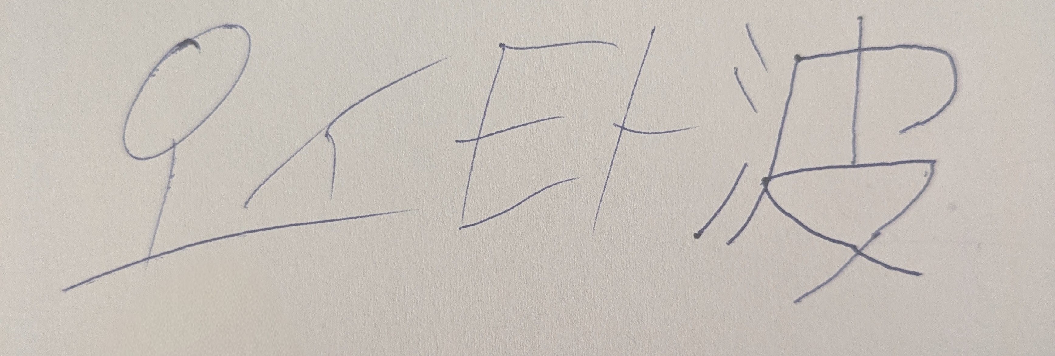 The handwriting style presents as somewhat minimalistic and bold. The strokes are angular and sharp, with noticeable variations in pressure. The overall appearance suggests a direct, unfussy approach to communication. The characters, like the first one, appear to be drawn with clear, decisive lines. The characters are quite large relative to the space, and there's a noticeable lack of connecting strokes, giving it a somewhat disconnected feel.