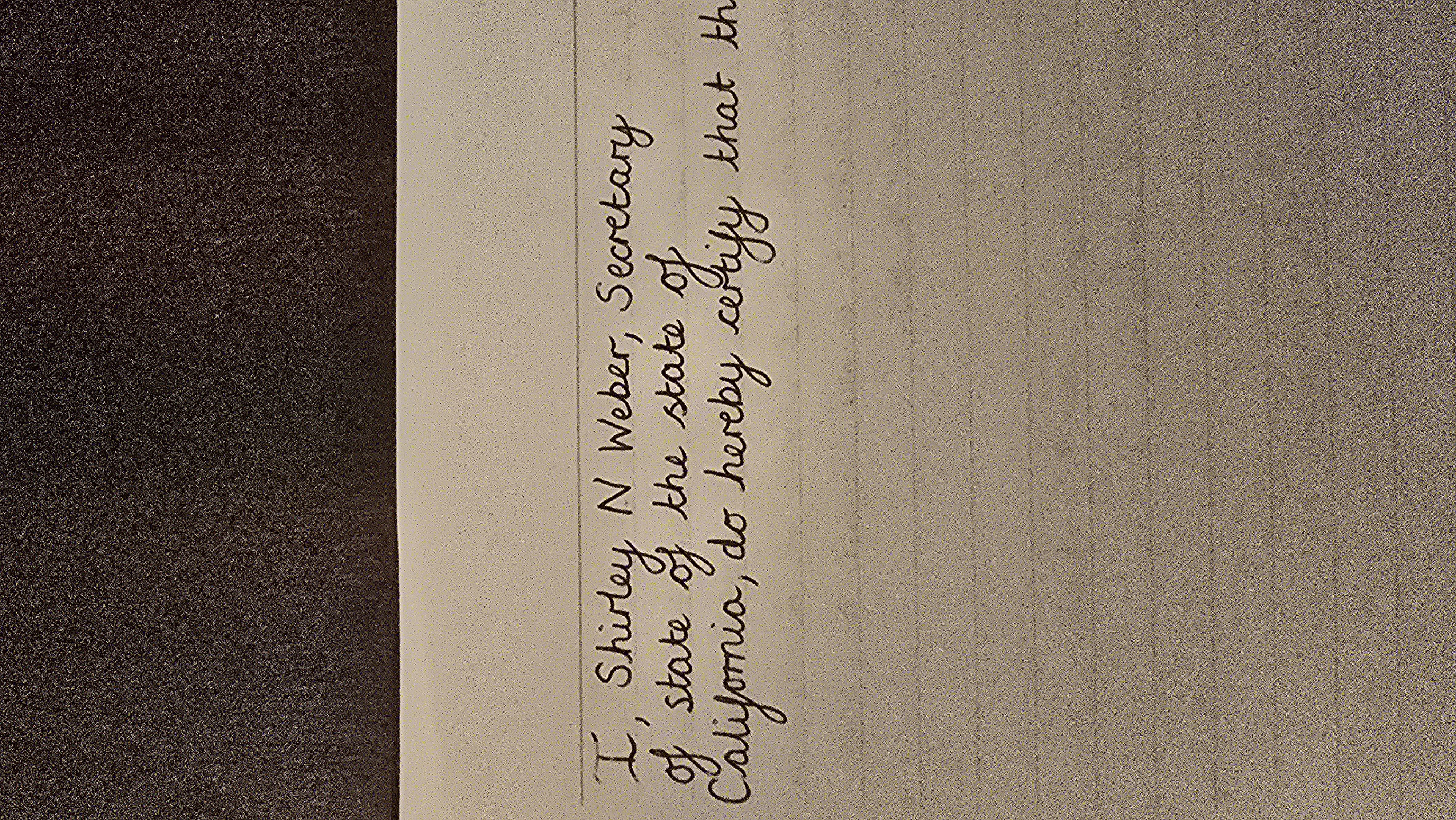 The handwriting style presents as carefully crafted and deliberate, favoring rounded forms. Note the circularity of the 'o's in 'do' and 'of', and the elegant curves of the 'S' in 'Shirley' and 'Secretary'. The writing appears consistent in slant and size, though with some variation in pressure, creating a slightly uneven baseline. Overall, the writing conveys a sense of formality and precision, yet it also has a certain warmth due to the rounded letter shapes.