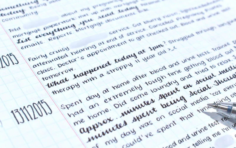 The handwriting is characterized by a neat, upright style with consistent letter formations. The use of both print and cursive elements is evident, particularly in words like "minutes spent on social media." The slant is generally consistent, showing an organized approach. There's a noticeable effort to maintain uniformity, although the size varies slightly. Overall, the writing is clear and easy to read, reflecting a focus on presentation and precision.
