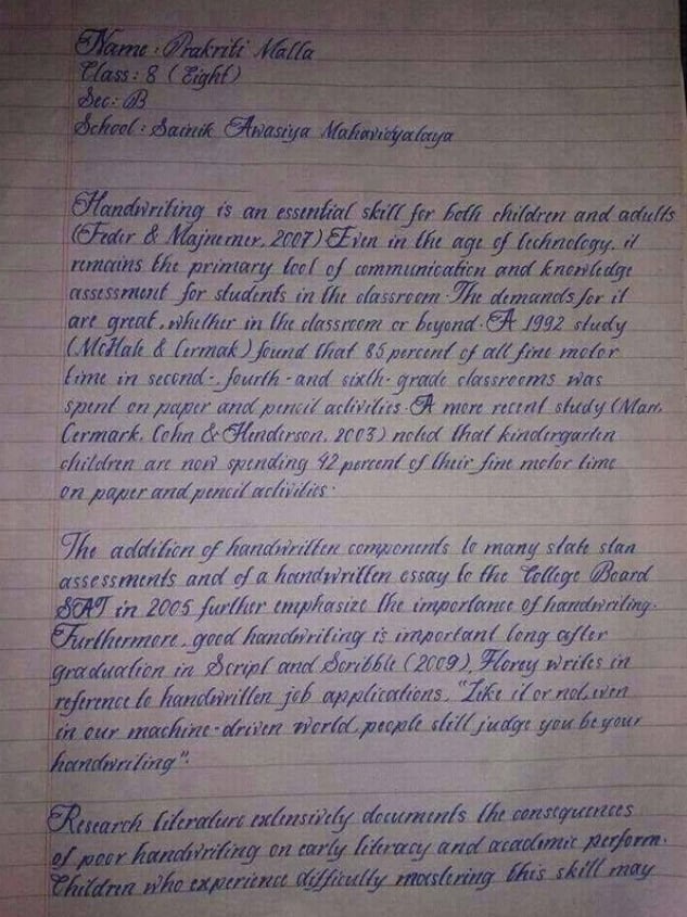 The handwriting is neat and flowing, hinting at thoughtfulness and a desire for clarity, though consistency in letter size could be improved. This writing style shows elegance and legibility.