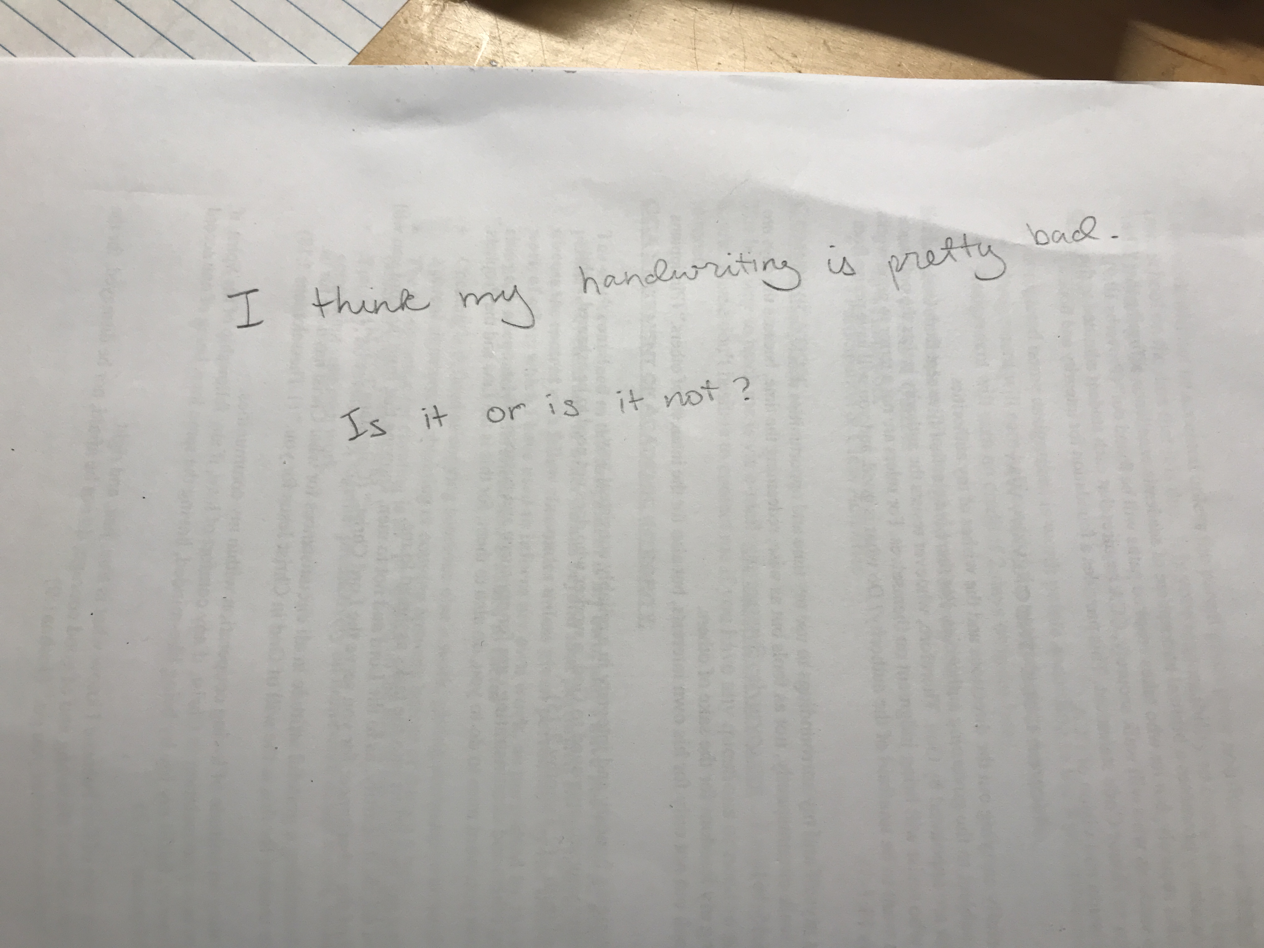 Based on this handwriting, the individual likely possesses a straightforward and honest personality. The self-awareness expressed in the sample suggests a capacity for introspection and self-criticism. The lack of flamboyant flourishes indicates a practical and grounded nature. The uneven spacing and baseline might reflect a tendency towards occasional spontaneity or a flexible approach to tasks. Overall, the handwriting suggests a person who values simplicity and authenticity.