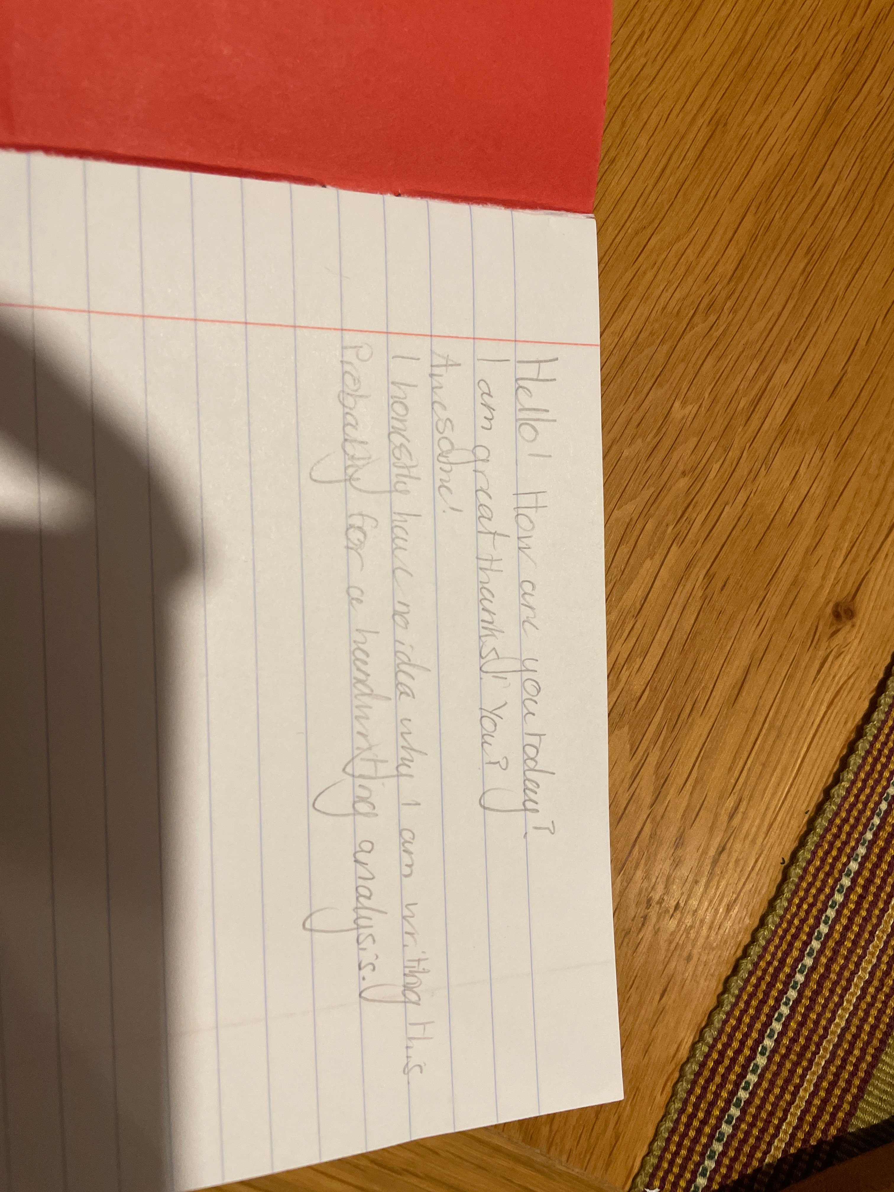 Based on this handwriting, one might infer a personality that values honesty and directness, as suggested by the phrase "I honestly have no idea why I am writing this." The pragmatic approach to the task, writing only what is necessary, could indicate a person who is efficient and to-the-point. There is a hint of openness and a lack of pretension.