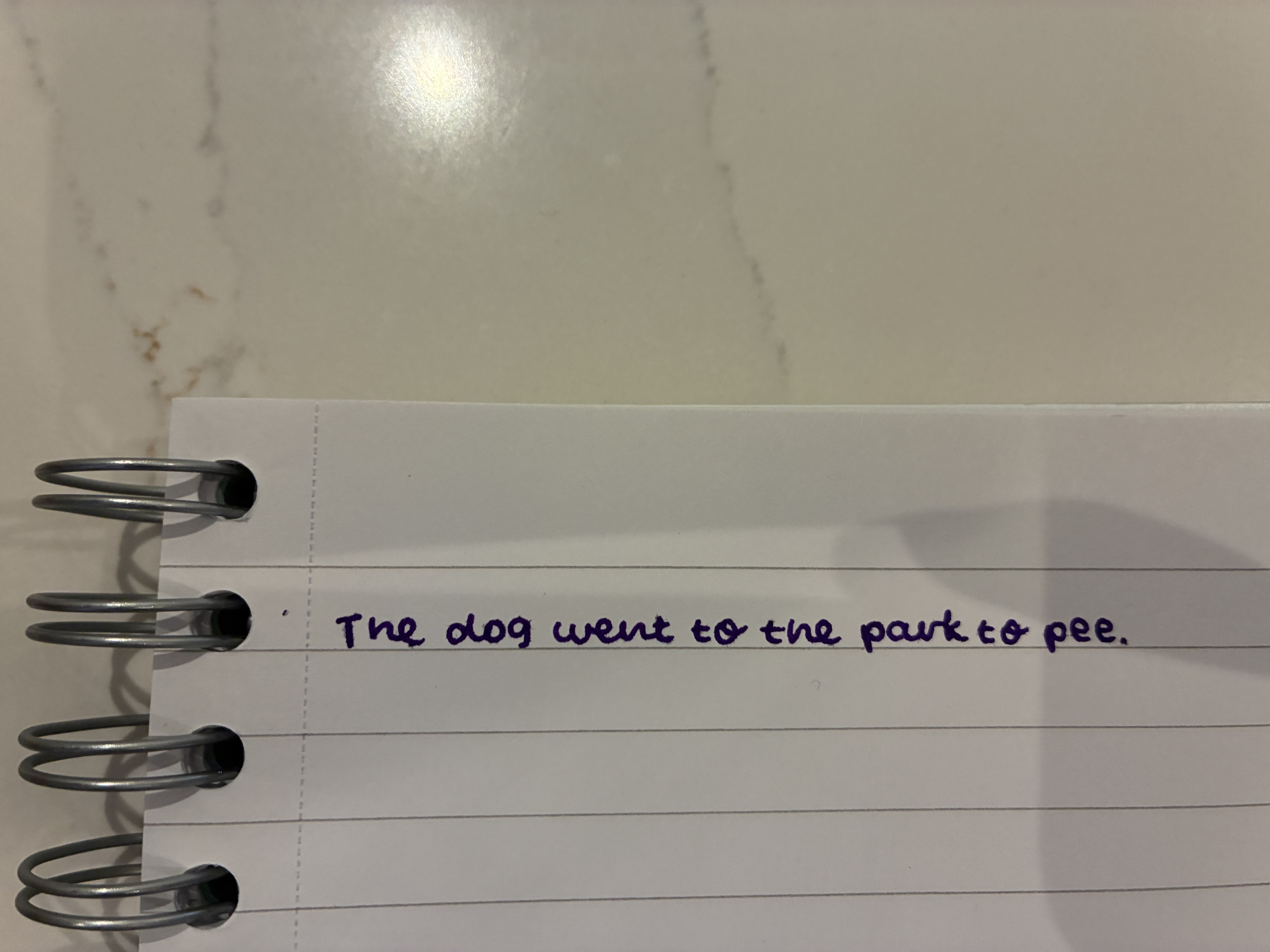 The handwriting in this sample is characterized by its clear and deliberate strokes. The letters are well-formed and relatively consistent in size and shape. There is a slight roundness to the letters, especially in words like "dog" and "went", giving it a gentle and approachable feel. The spacing between words is adequate, and the writing is neatly aligned with the lines on the paper. Overall, the handwriting is quite legible and suggests a careful and methodical approach.