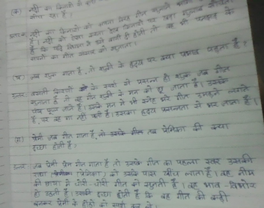 The handwriting style is characterized by a flowing, cursive script, where letters within words are generally connected, giving the writing a sense of rhythm, such as the consistent loops in the Hindi character "เค". The size of the letters appears fairly uniform, although some ascenders and descenders vary slightly in length. The pressure applied to the writing instrument seems consistent, resulting in a fairly uniform line thickness throughout the sample. There's a sense of neatness, with generally clear letter formations and consistent spacing between words.