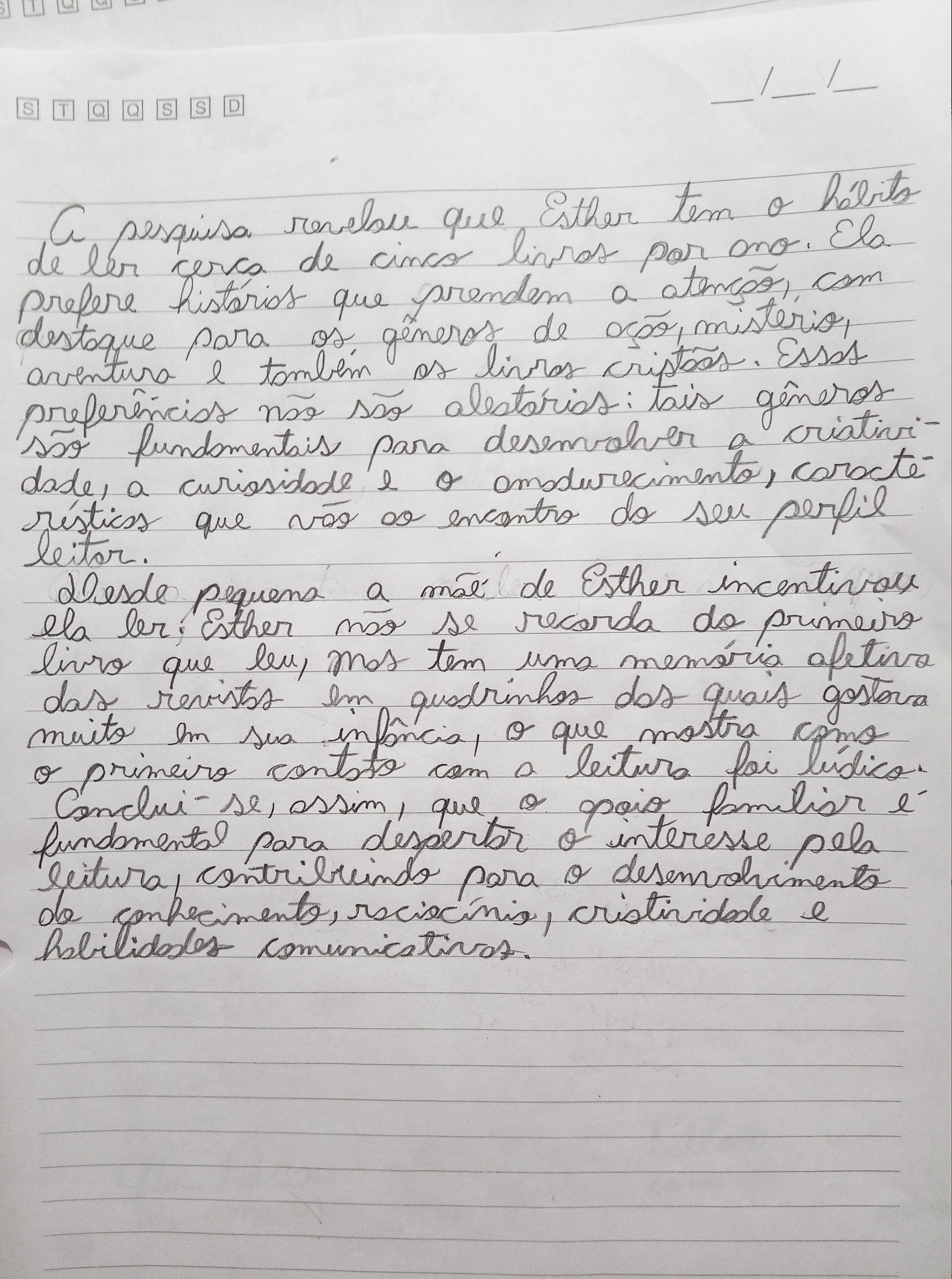The handwriting reveals a friendly and organized individual with a methodical approach. Focusing on consistent spacing and refining letter forms could further enhance the writing's legibility and expressiveness.
