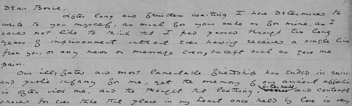 This handwriting suggests a personality that is sensitive and introspective. The rounded forms and connecting strokes may indicate a desire for harmony and connection, while the wavering baseline could reflect a degree of emotional instability or uncertainty. The carefulness in the letter formations implies attention to detail and a desire to be understood, while the occasional difficulty in legibility hints at a private or guarded nature. There's a depth of feeling evident, as the writer expresses strong emotions in words such as "pain", "loathing", and "ill fate".
