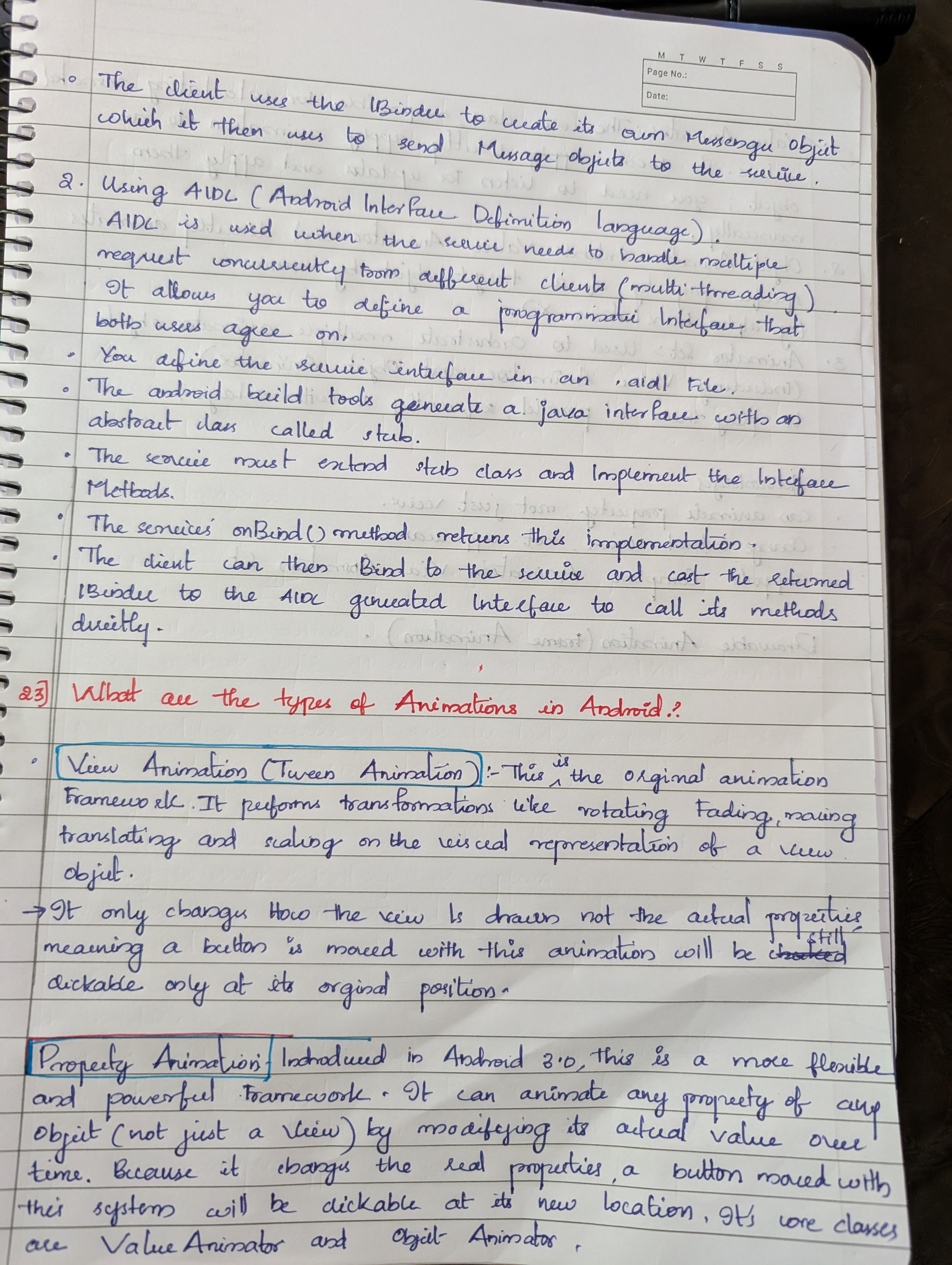 The handwriting is characterized by a rounded, somewhat loopy style. The letter formations are generally consistent, but there is a slight variation in slant and size. The handwriting has a medium to large size, and the spacing between words is generally adequate, though sometimes a little squashed. There is a clear attempt at neatness, but the overall impression is of casual rather than meticulous execution. The capital letters, like the 'A' in 'Android' and 'I' in 'Interface' have a unique flourish, suggesting a touch of individuality. The loops in letters like 'g' and 'y' are full and rounded.