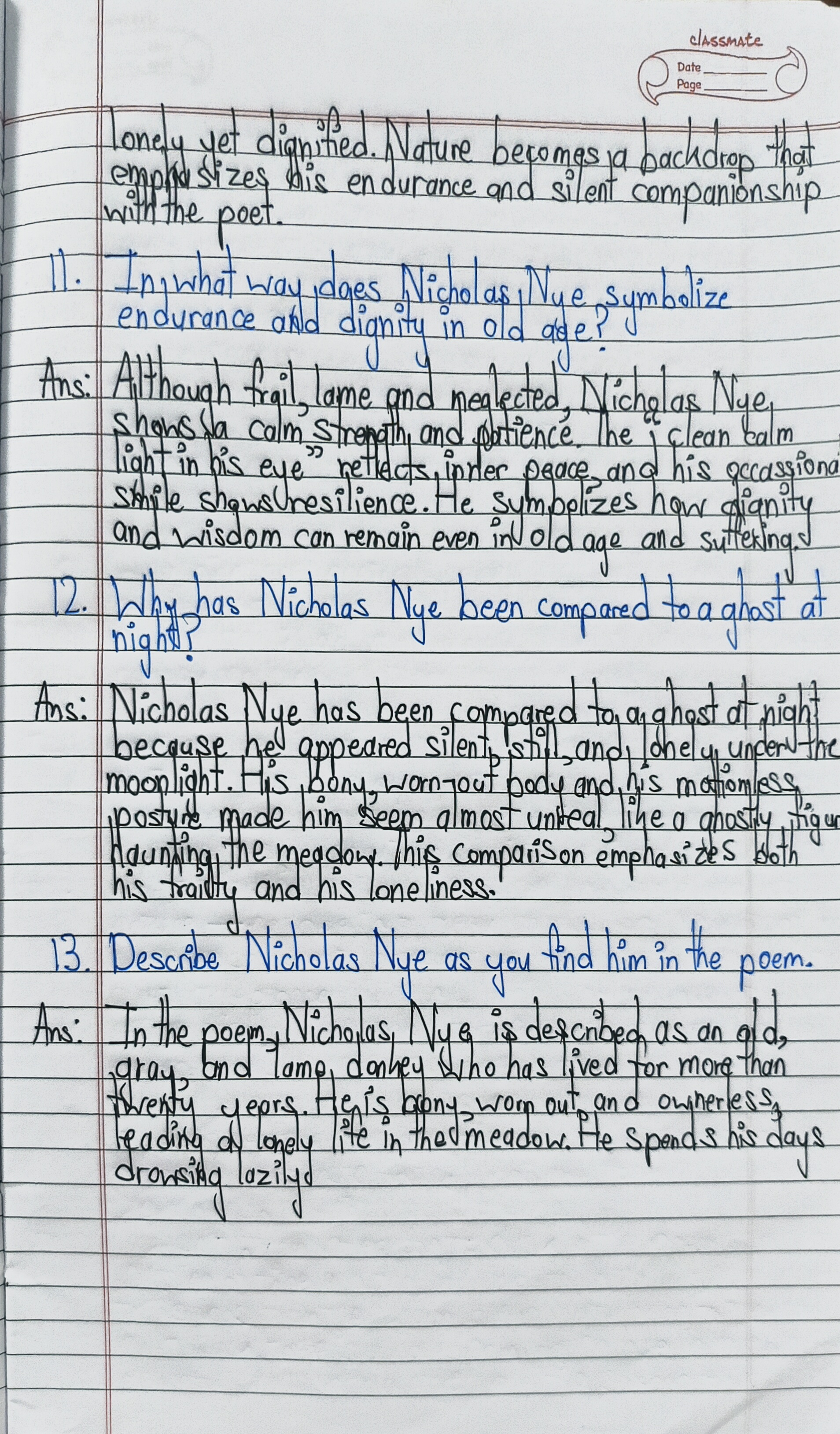 The handwriting exhibits a clear, upright style with consistent letter formation, particularly noticeable in words like "dignified" and "companionship". The writing is relatively neat, demonstrating good control and spacing between words. The baseline is mostly even, indicating a steady hand and focused approach. There's a slight forward slant, which can suggest enthusiasm and engagement. The letter size is uniform, indicating a structured and organized mindset.