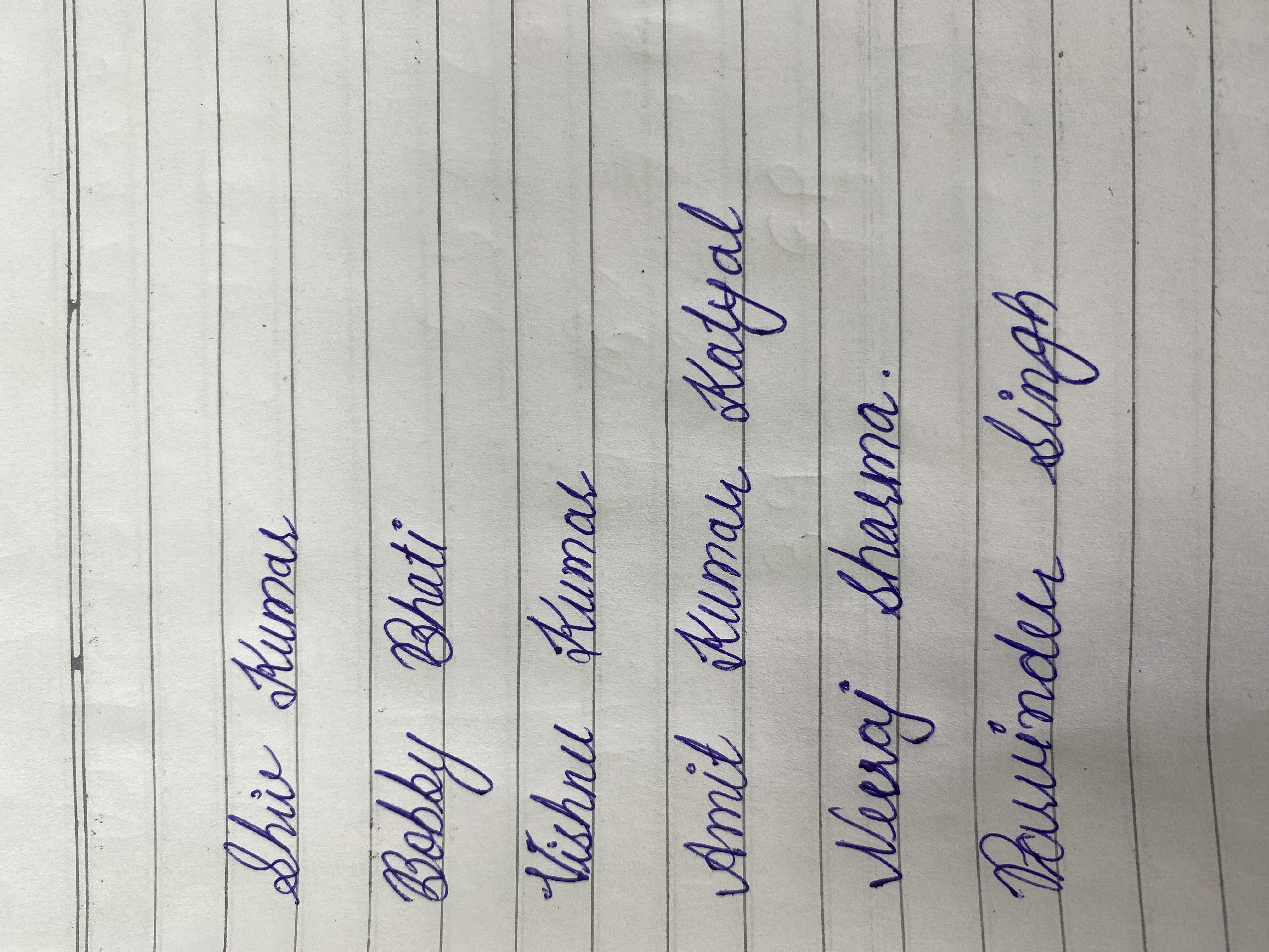 The handwriting is characterized by its looping ascenders and descenders, creating a flowing, almost cursive style, as seen in words like "Kumar" and "Bhati". There's a certain rhythm to the strokes, but consistency varies, especially in letter formations, where some letters appear more carefully crafted than others. The writing leans towards a larger size, filling the lined space generously, which could suggest confidence. Overall, the handwriting is relatively legible, though some individual letters might require a second glance to decipher.