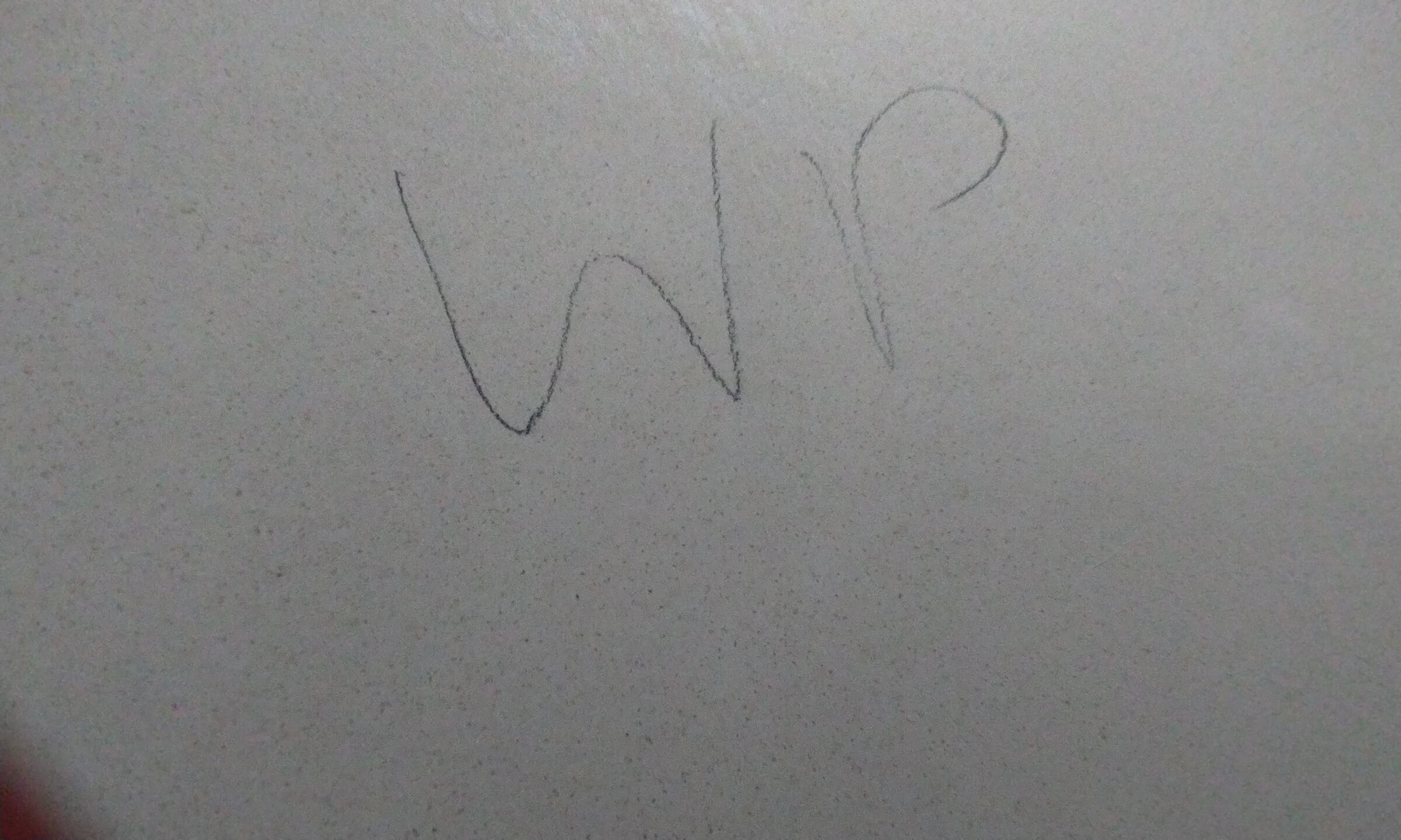The handwriting, consisting of the letters "W" and "P", exhibits a simplified and somewhat disjointed style. The "W" is formed with angular strokes, lacking a smooth, connected flow. The "P", while recognizable, appears somewhat detached and its circular element is not fully closed. The overall impression is one of brevity and perhaps haste, prioritizing conveying the basic form over finesse.