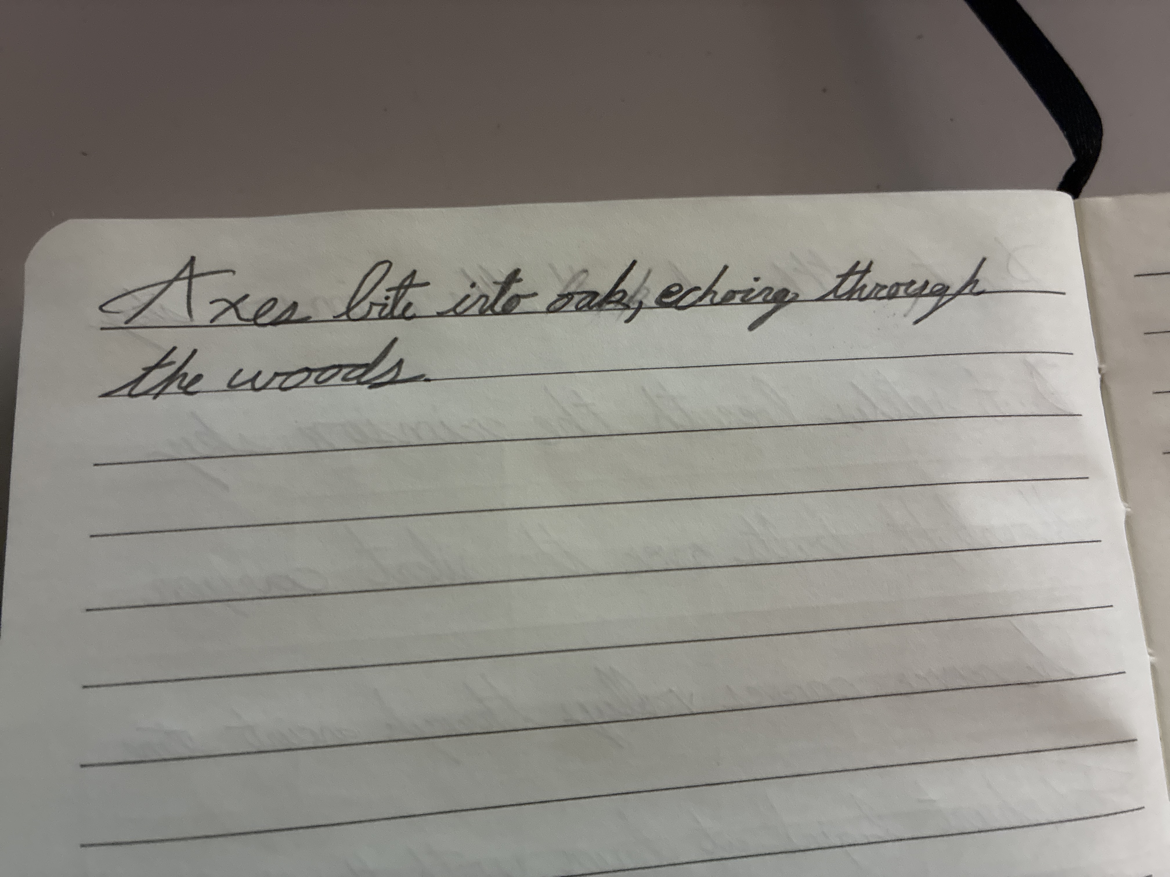 The handwriting presents as a cursive style with a distinct, flowing quality. There's a certain elegance to the letterforms, particularly in the elongated strokes and rounded shapes, seen especially in the uppercase 'A' of "Axes" and the loops in words like "echoing" and "through". The baseline is generally consistent, suggesting good control, and the spacing between words is even, contributing to overall legibility. The pressure applied seems relatively uniform, resulting in a smooth, flowing script.