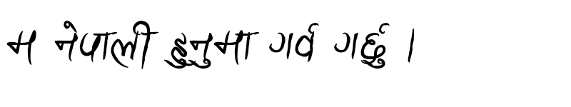 The handwriting sample exhibits a distinctive, flowing style with a notable degree of flair. The curves and loops in characters like the 'เค' in 'เคเคฐเฅเคต' and the flourishes on the final character create a sense of artistic expression. The overall impression is that of a deliberate and stylized hand, though it maintains a reasonable level of legibility. The consistent stroke width and letter formations suggest a practiced hand.