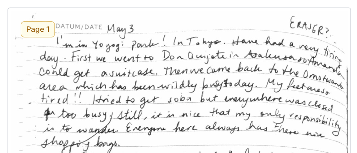 Based on the relaxed and flowing nature of the handwriting, it's possible the writer is adaptable and open to new experiences. The slight inconsistencies might point to someone who is easily distracted or whose mind races with thoughts. The forward slant often indicates someone who is outgoing and eager to engage with the world around them, as exemplified by the account of a busy day in Tokyo. The overall impression is one of someone who is observant and expressive, keen to capture the moment.